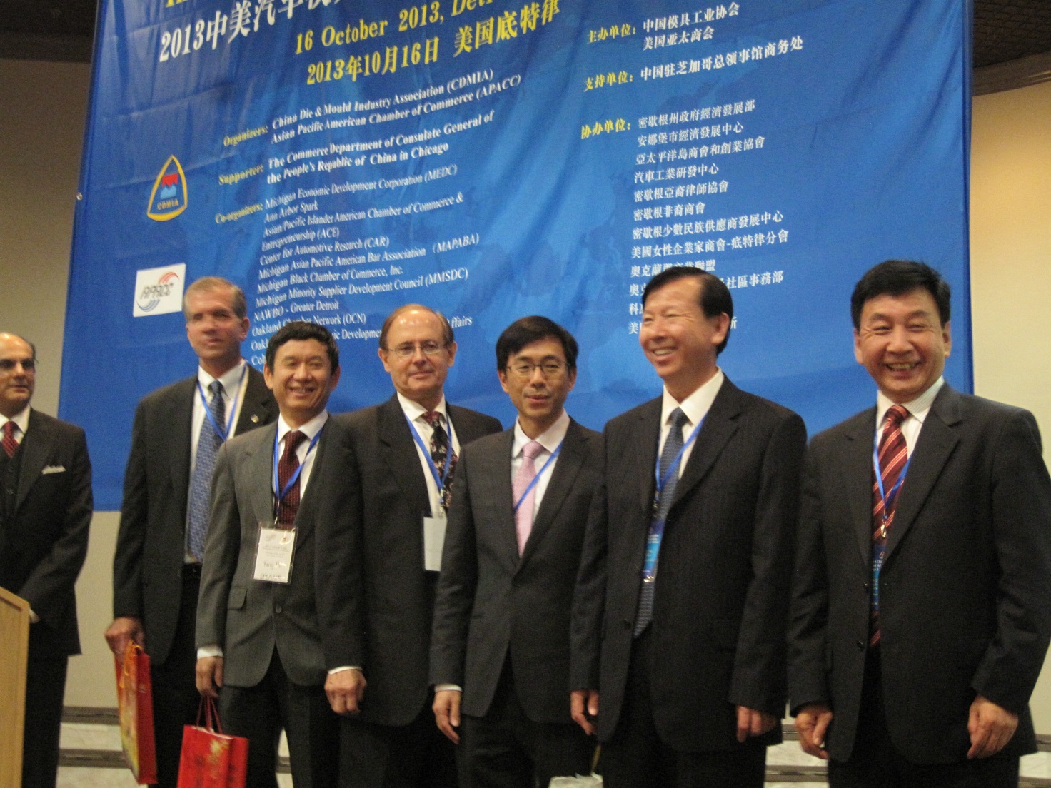 由中國模具工業(yè)協(xié)會(huì )、美國亞太商會(huì )共同主辦的“2013中美汽車(chē)模具技術(shù)經(jīng)濟貿易采購洽談會(huì )(2013US-China Automotive Die and Molding Industry Technology & Trade Conference)”于2013年10月15--17日在美國底特律成功舉辦。本次活動(dòng)得到中國駐芝加哥總領(lǐng)事館商務(wù)處(支持單位)和美國密歇根州政府經(jīng)濟發(fā)展署、安娜堡巿經(jīng)濟發(fā)展中心、亞太平洋島商會(huì )和創(chuàng )業(yè)協(xié)會(huì )、美國汽車(chē)工業(yè)研發(fā)中心、美國科惠力公司、美國迪克森律師事務(wù)所、 美國密歇根亞裔律師協(xié)會(huì )、美國密歇根非裔商會(huì )、美國密歇根少數民族供應商發(fā)展中心、美國女性企業(yè)家商會(huì )-疷特律分會(huì )、 美國奧克蘭郡商業(yè)聯(lián)盟、美國奧克蘭郡經(jīng)濟發(fā)展及社區事務(wù)部(協(xié)辦單位)的大力支持。