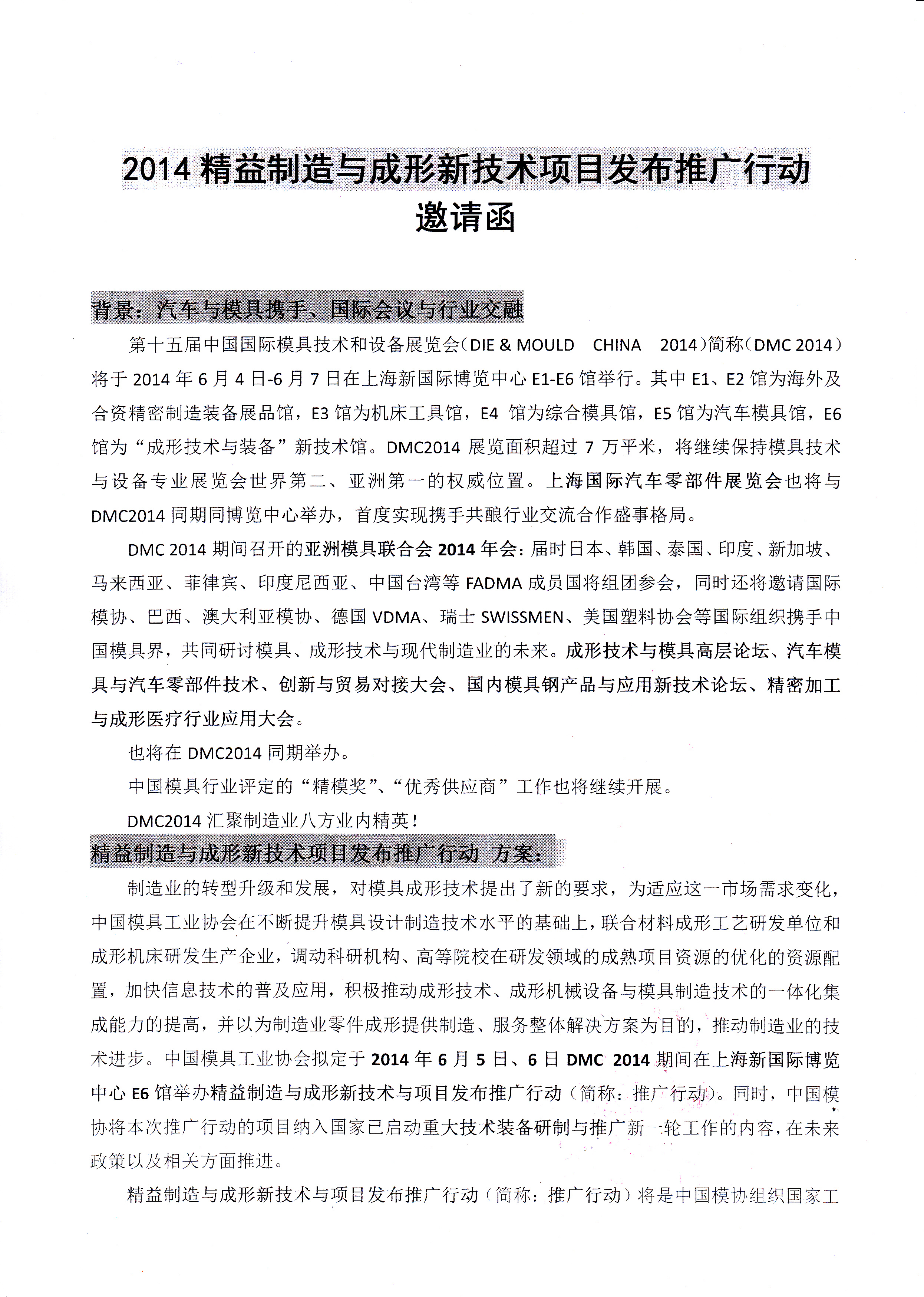 2014精益制造與成形新技術(shù)項目發(fā)布推廣行動(dòng)邀請函