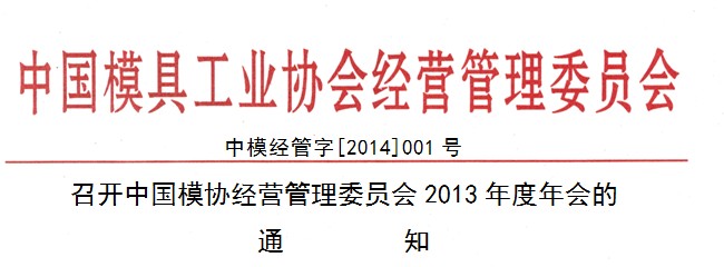 中國模具工業(yè)協(xié)會(huì )經(jīng)營(yíng)管理委員會(huì )2013年度年會(huì ),茲定于2014年3月24日(星期一)~26日,在湖北省武漢市荷田大酒店召開(kāi),會(huì )議得到湖北模具行業(yè)協(xié)會(huì )和武漢市模協(xié)的全力支持和配合。