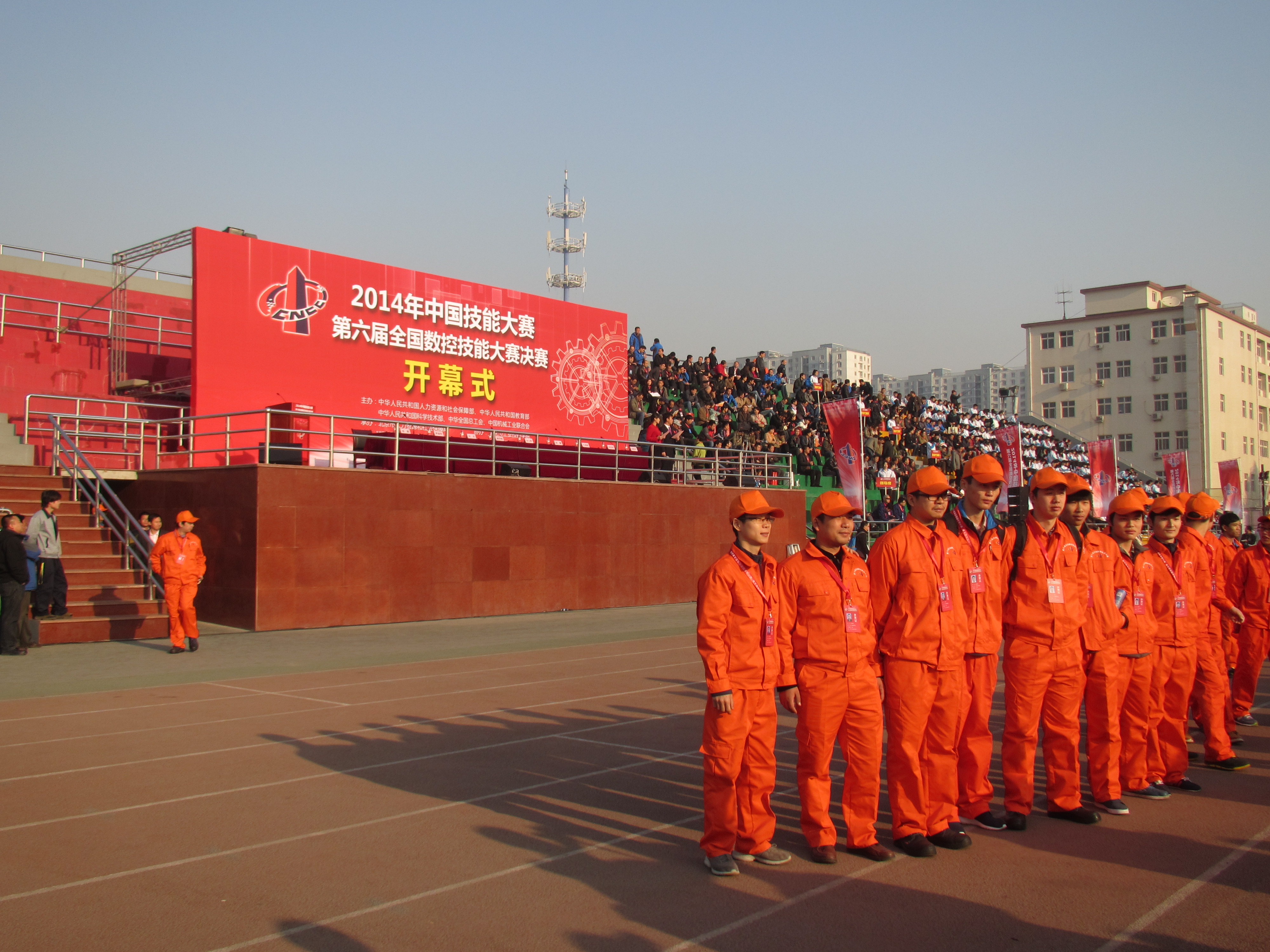秋高氣爽、天高云淡,又是一年好時(shí)節。11月4日一大早,北京市工業(yè)技師學(xué)院的操場(chǎng)上彩旗飄飄,熱情洋溢、欣欣向榮。2014年中國技能大賽第六屆全國數控技能大賽決賽開(kāi)幕式在此隆重舉行。來(lái)自國家人力資源和社會(huì )保障部、中國就業(yè)技術(shù)培訓指導中心、中國記協(xié)工業(yè)聯(lián)合會(huì )、教育部、中華全國總工會(huì )、北京市人力資源和社會(huì )保障局、科學(xué)技術(shù)部、北京化工集團的領(lǐng)導以及大賽專(zhuān)家裁判、各省市領(lǐng)隊教練與選手、世賽國家集訓隊選手、各技術(shù)廠(chǎng)商、媒體等近2000人出席了決賽的開(kāi)幕式。