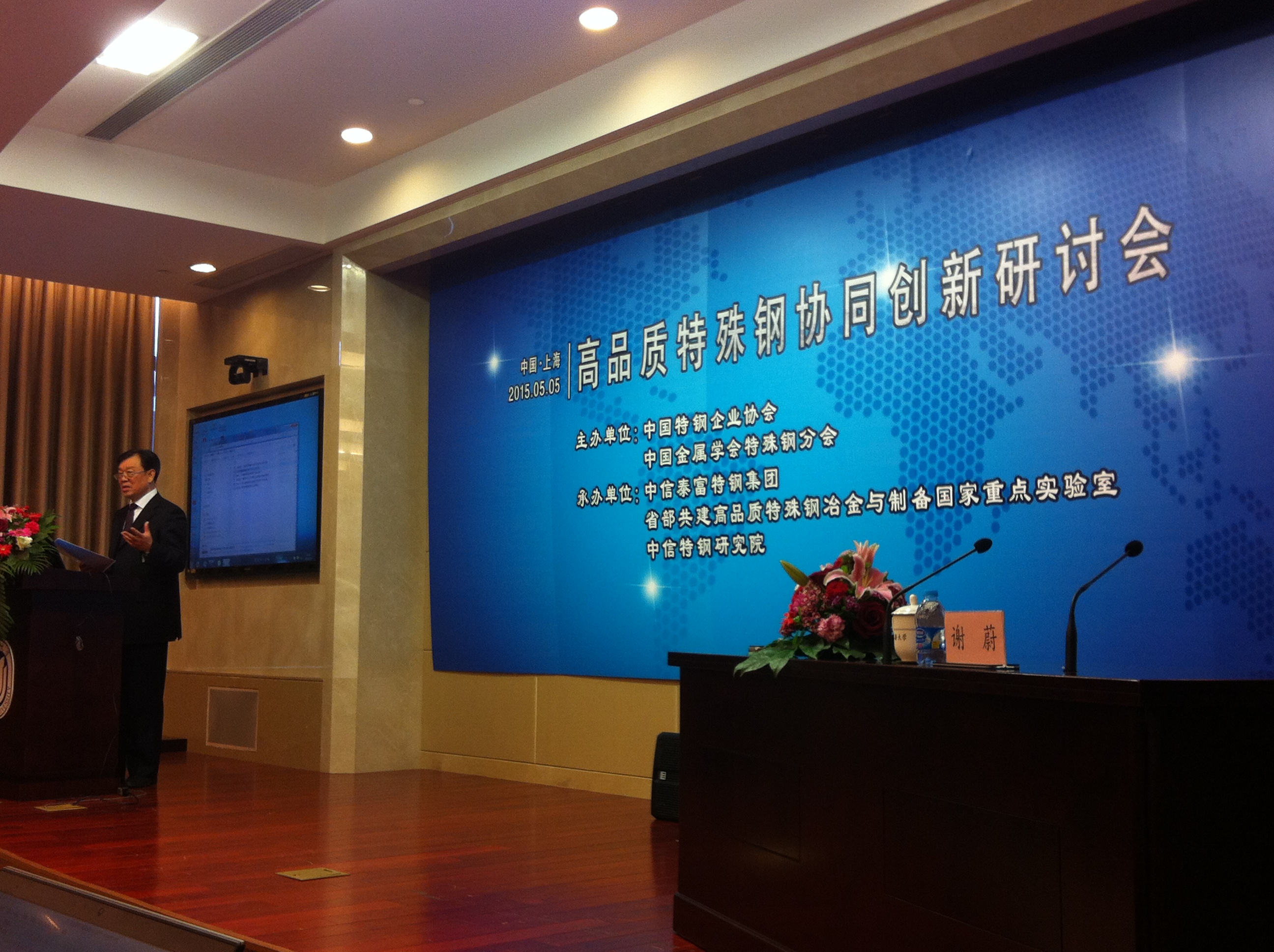 2015年5月5日,中國特鋼企業(yè)協(xié)會(huì )、中國金屬學(xué)會(huì )特殊鋼分會(huì )主辦的“高品質(zhì)特殊鋼協(xié)同創(chuàng )新研討會(huì )"在上海舉行。干勇院士致辭,徐匡迪院士主報告。中國模具工業(yè)協(xié)會(huì )常務(wù)副秘書(shū)長(cháng)秦珂應邀出席。呼吁軸承鋼、齒輪鋼、模具鋼對高端制造發(fā)展的作用。