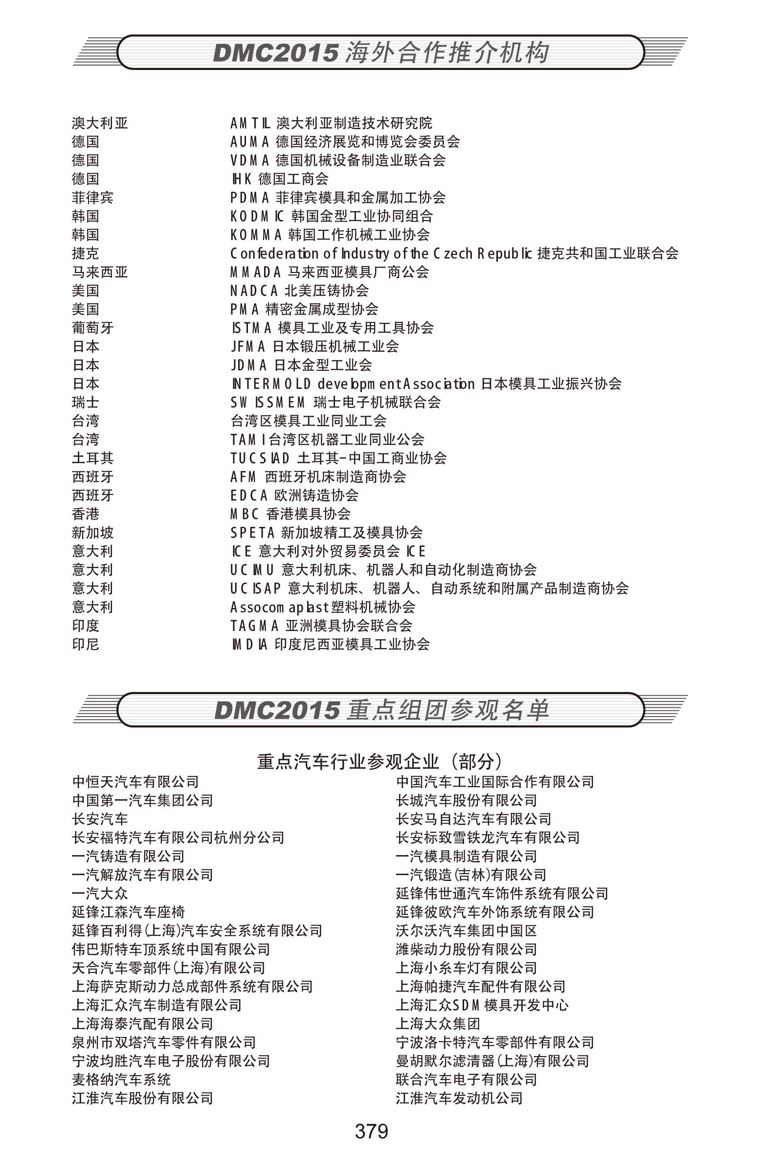 DMC2015海外合作推介機構、重點(diǎn)組團參觀(guān)名單
