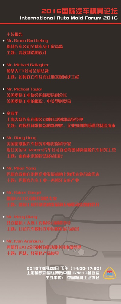 2016國際汽車(chē)模具論壇議程 |