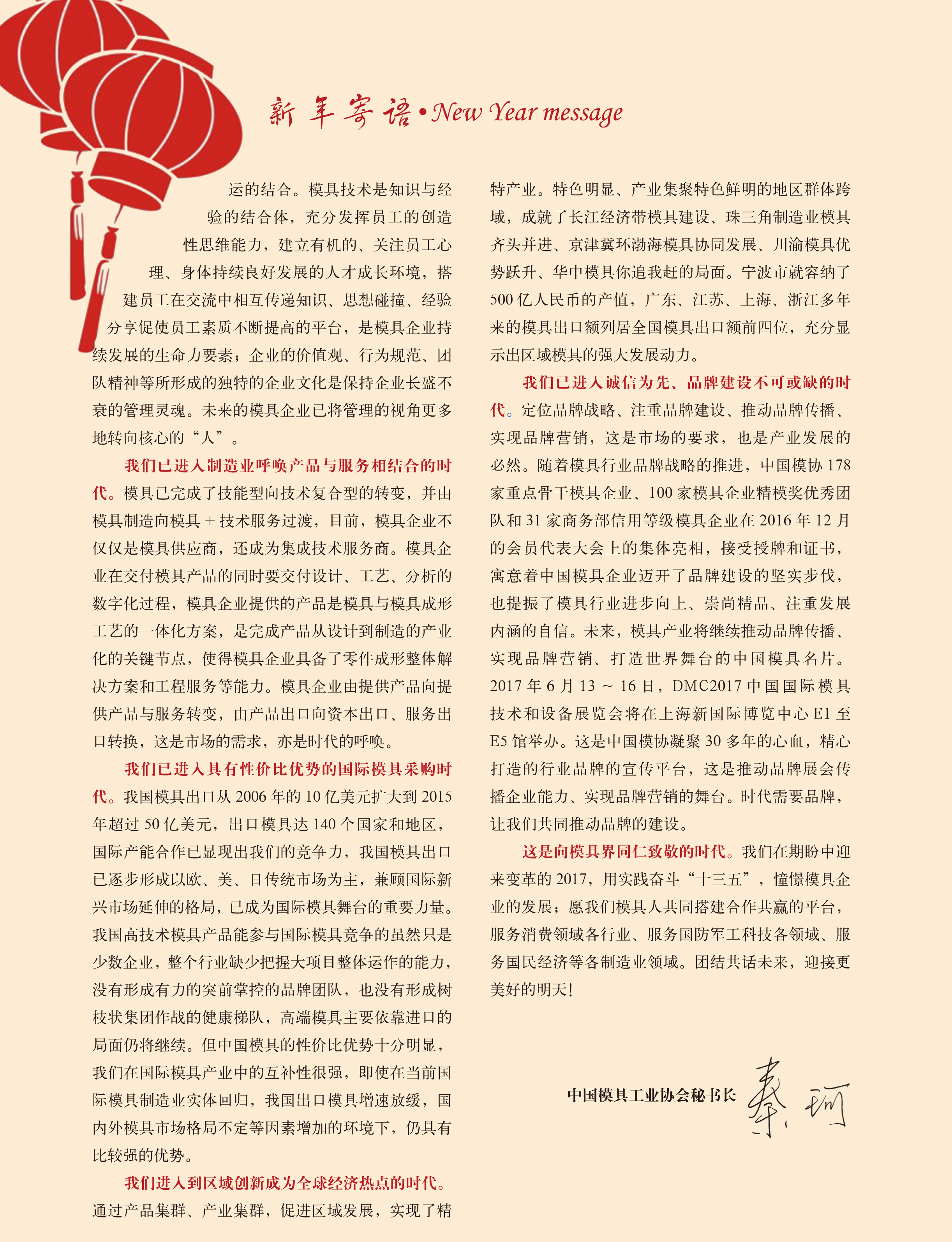 ——中國模具工業(yè)協(xié)會(huì )秘書(shū)長(cháng)2017新春致詞