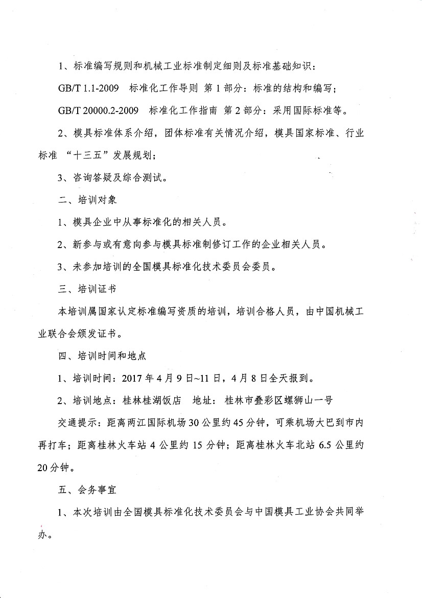關(guān)于舉辦機械工業(yè)(模具)標準編寫(xiě)人員培訓活動(dòng)的通知