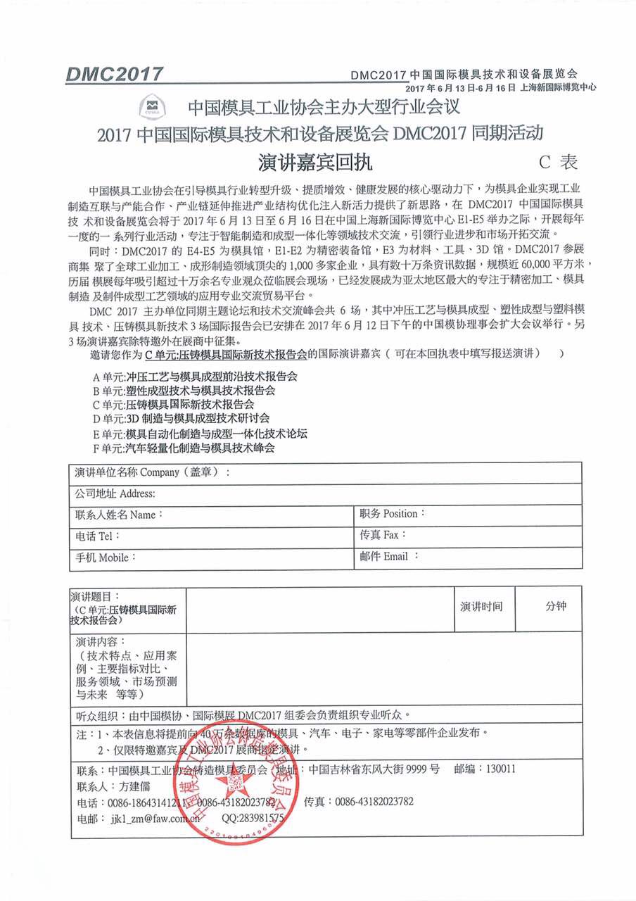 DMC2017同期活動(dòng) 演講嘉賓回執