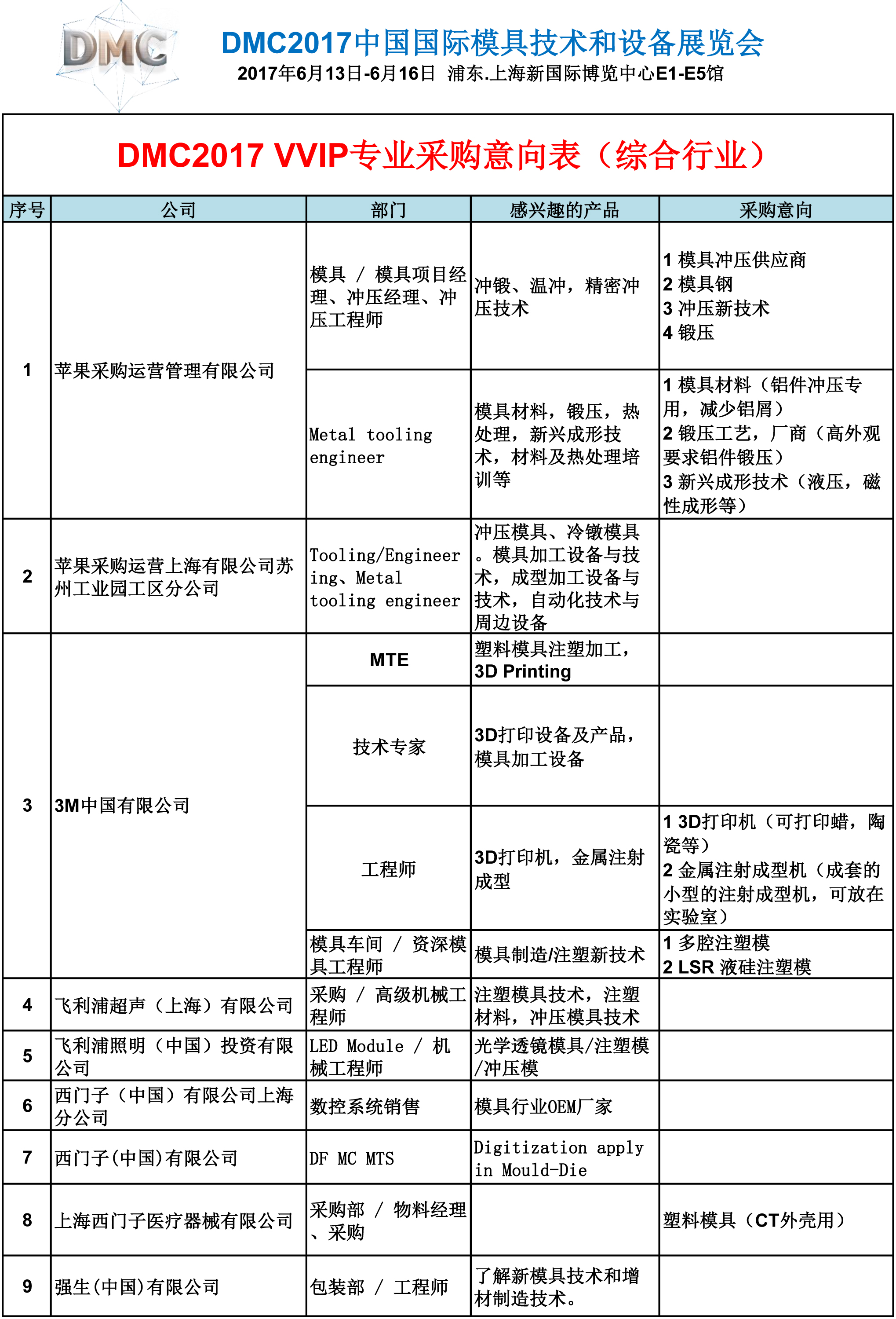 DMC2017 VVIP專(zhuān)業(yè)采購意向表(綜合行業(yè))