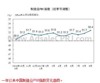 9月份,中國制造業(yè)PMI為52.4%,連續兩個(gè)月上升,達到2012年5月以來(lái)的最高點(diǎn),中國制造業(yè)繼續保持穩中向好的發(fā)展態(tài)勢,擴張步伐有所加快。
