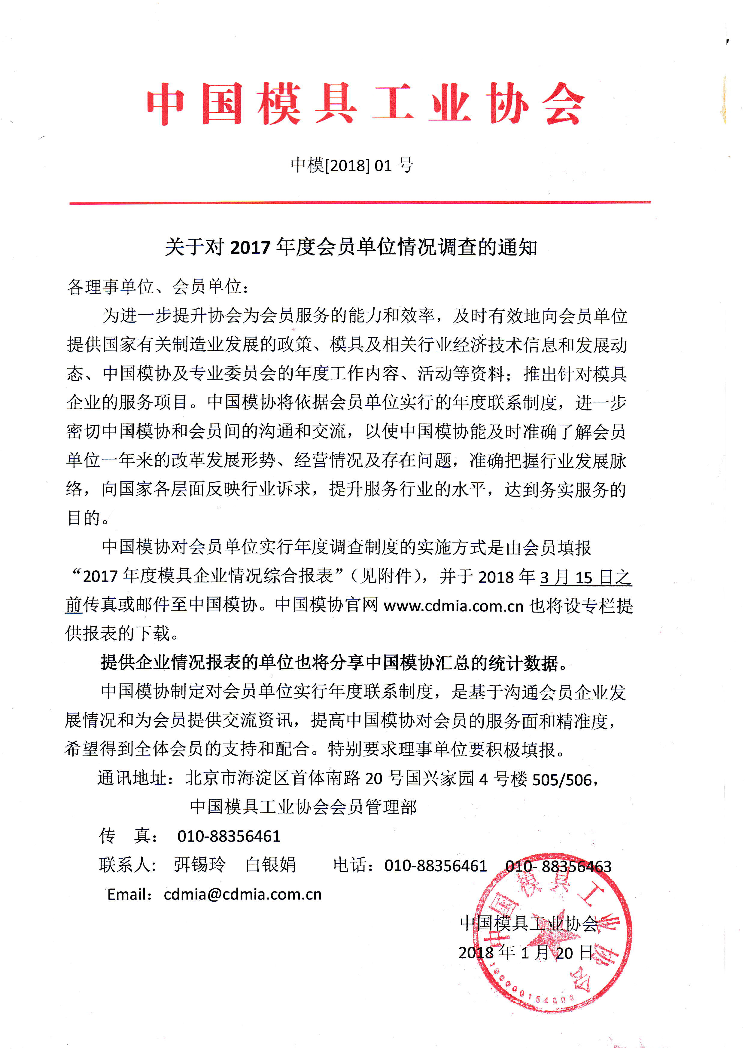 關(guān)于對2017年度會(huì )員單位情況調查的通知