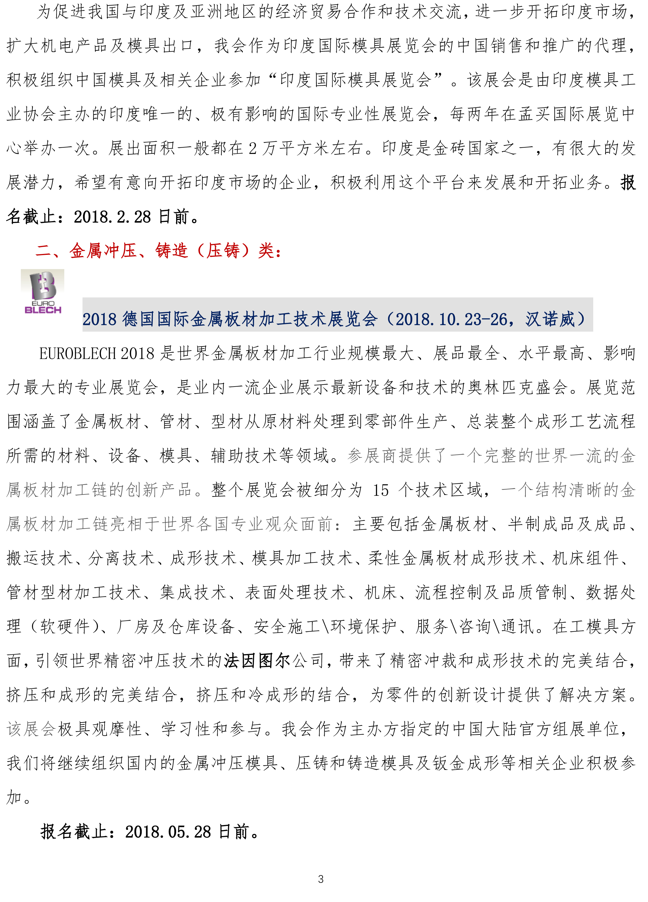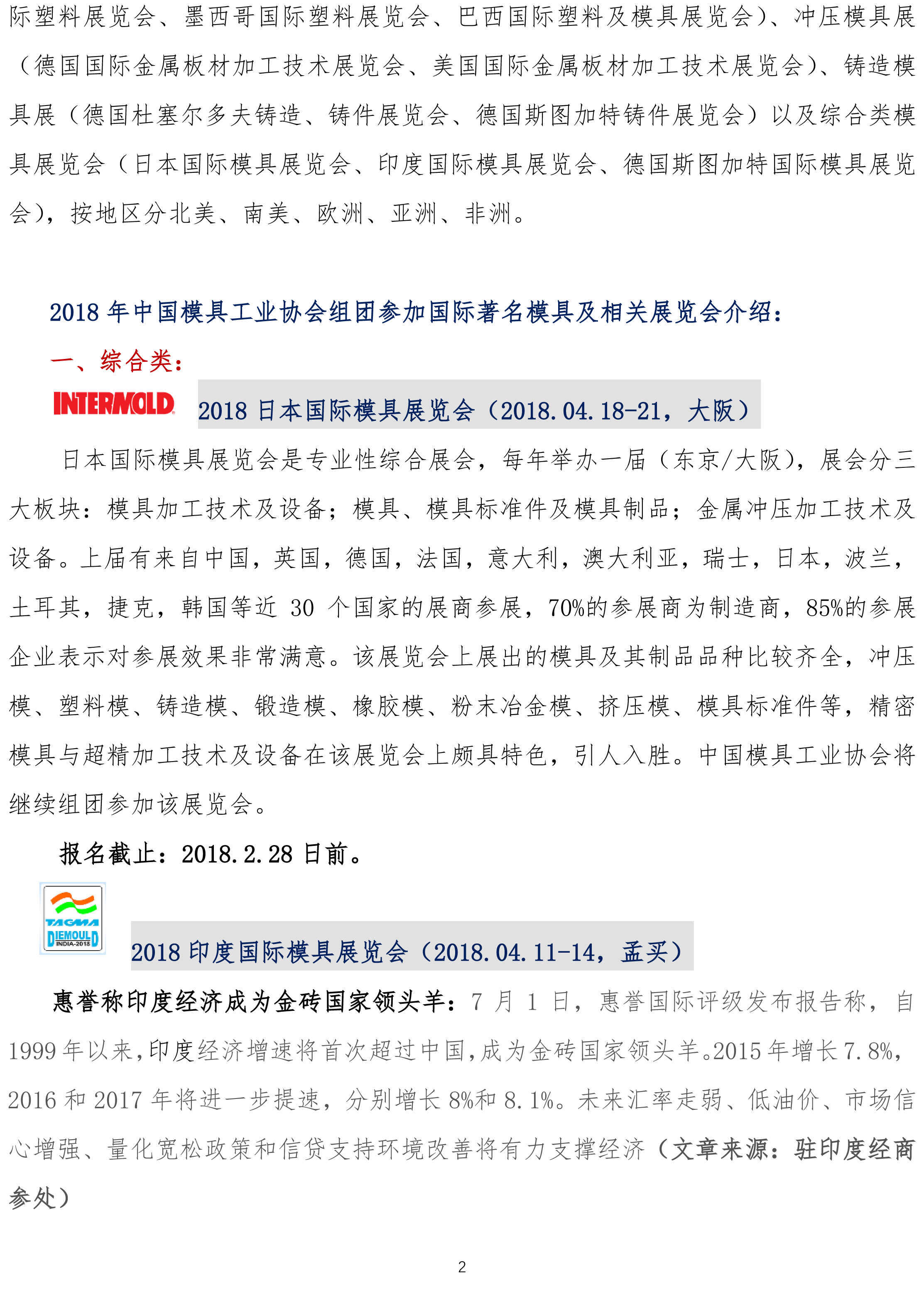 2018年中國模具工業(yè)協(xié)會(huì )組團參加國際著(zhù)名模具及相關(guān)展覽會(huì )介紹