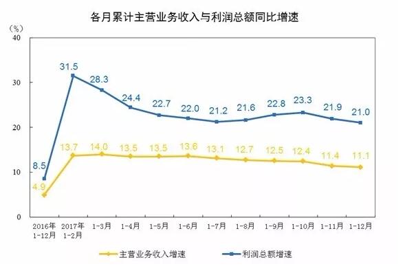 據國家統計局工業(yè)司何平博士解讀表示,2017年,中國規模以上工業(yè)企業(yè)實(shí)現利潤75187.1億元,比上年增長(cháng)21%,增速比2016年加快12.5個(gè)百分點(diǎn),是2012年以來(lái)增速最高的一年。