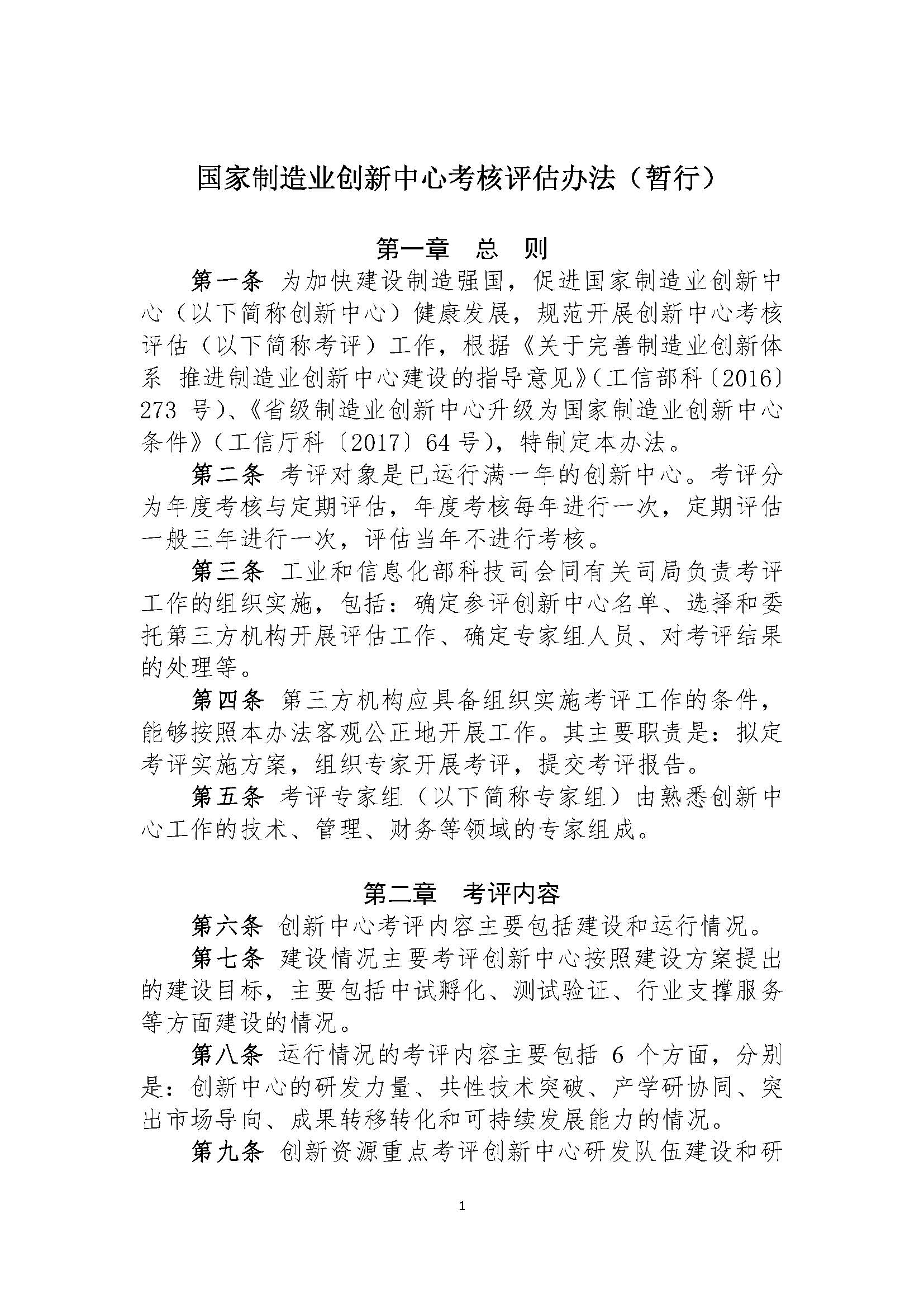 工業(yè)和信息化部辦公廳關(guān)于印發(fā)《國家制造業(yè)創(chuàng )新中心考核評估辦法(暫行)》的通知