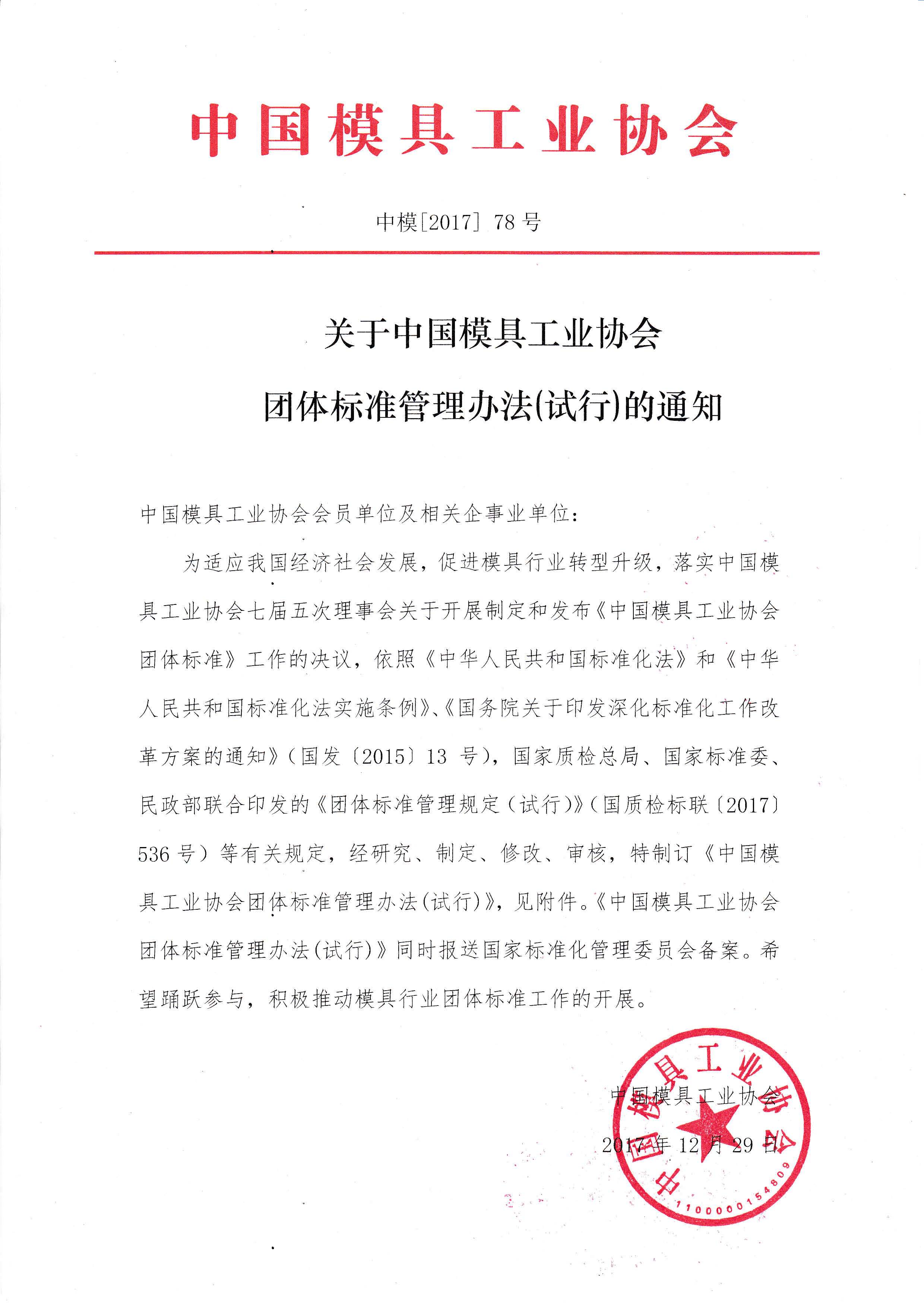 關(guān)于中國模具工業(yè)協(xié)會(huì )團體標準管理辦法(試行)的通知