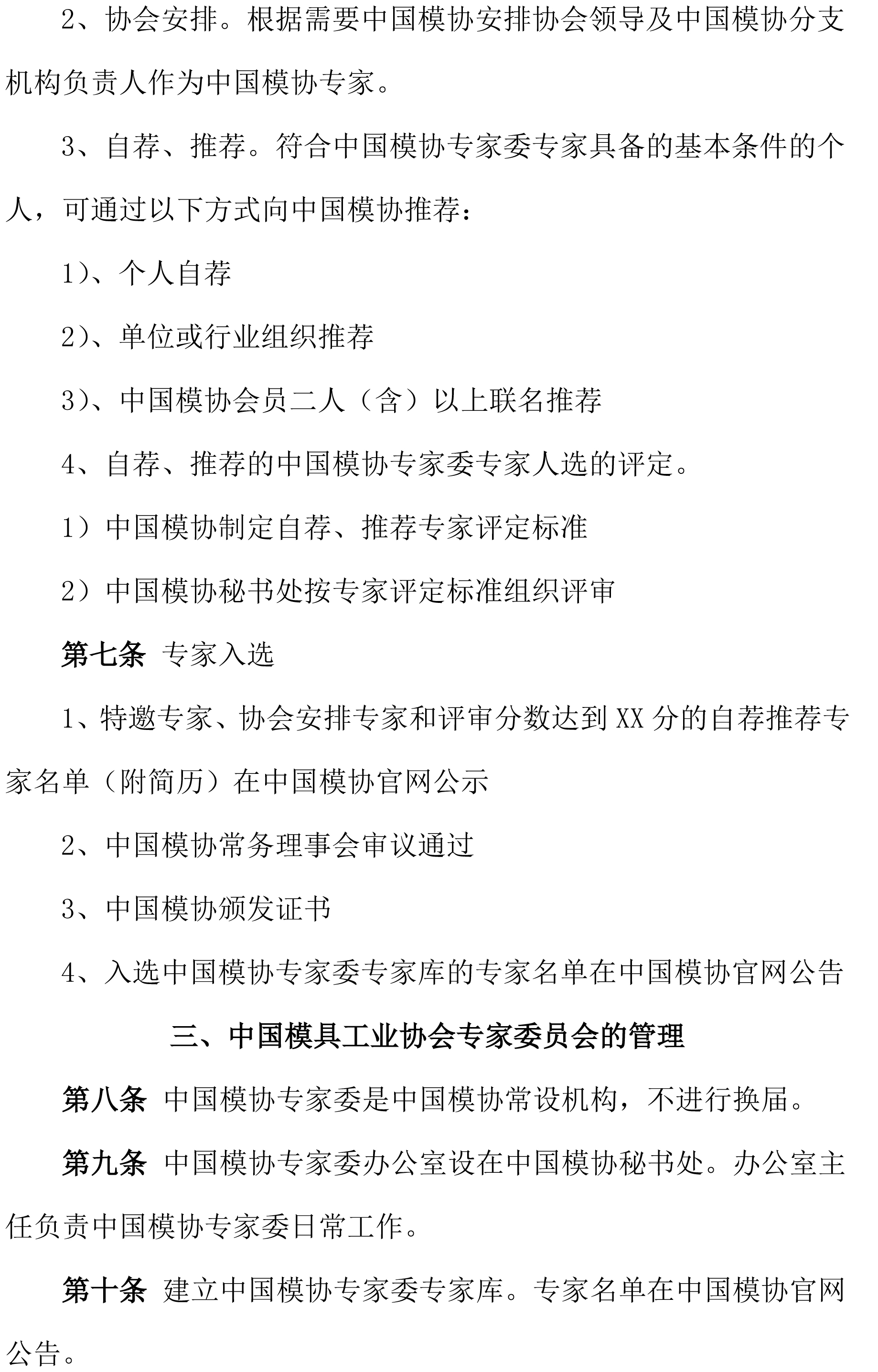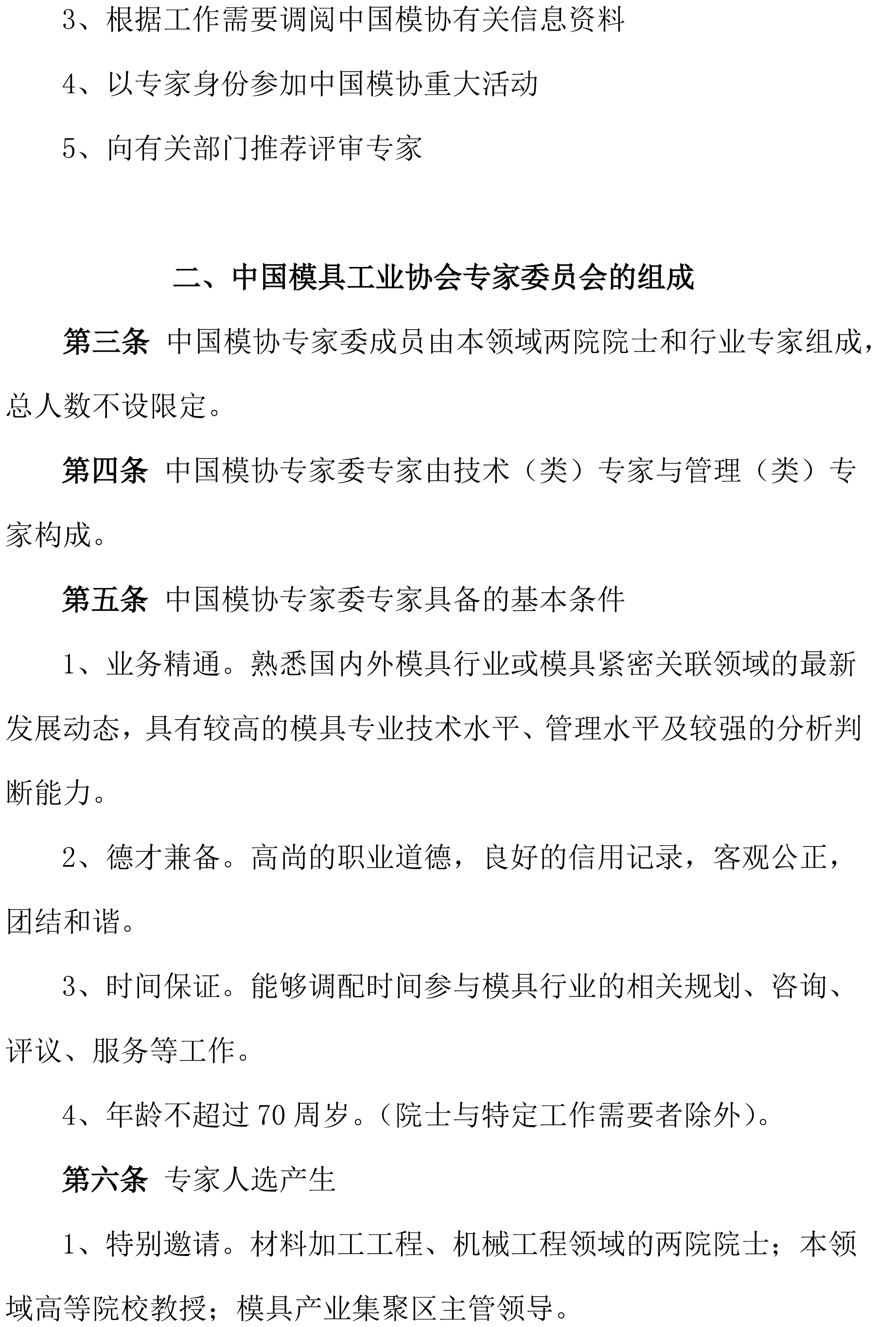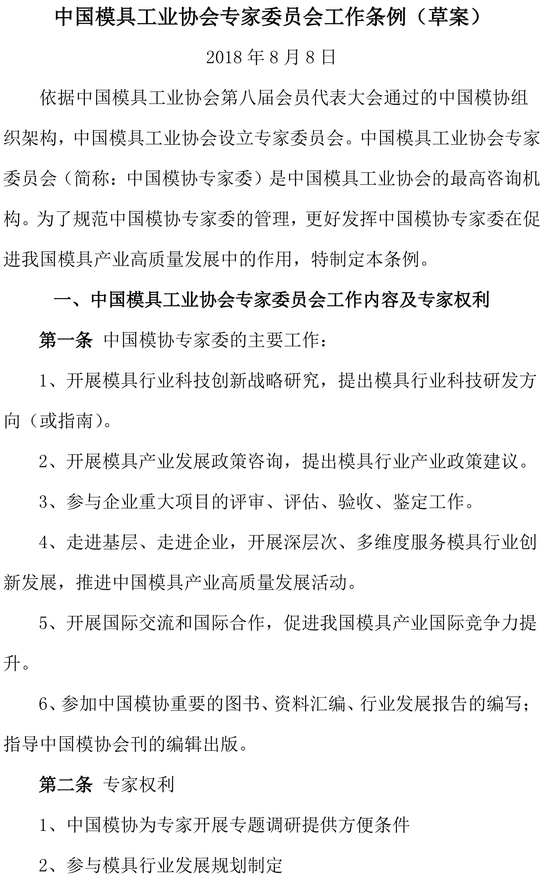 中國模具工業(yè)協(xié)會(huì )專(zhuān)家委員會(huì )工作條例(草案)