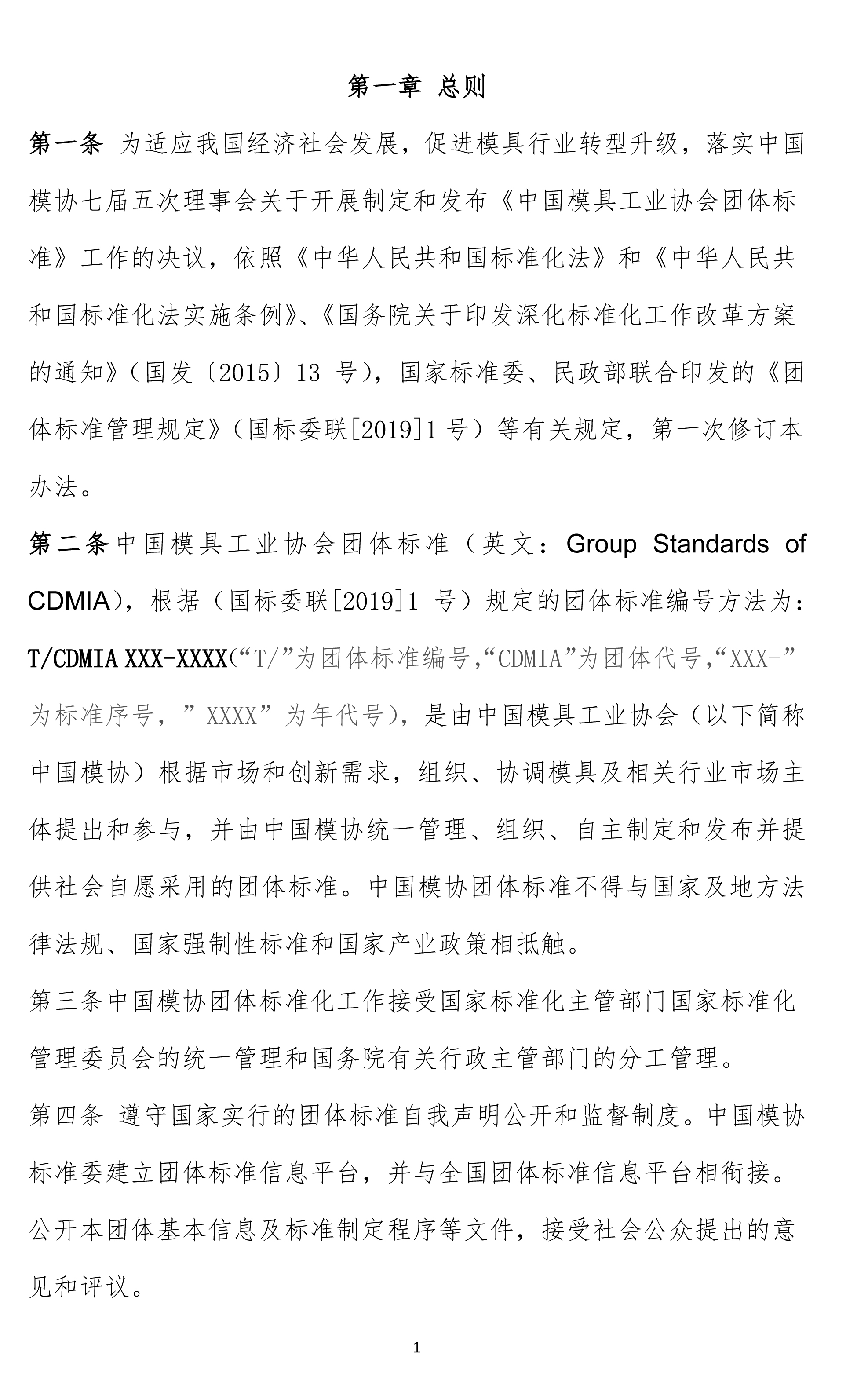 中國模具工業(yè)協(xié)會(huì )團體標準管理辦法(試行)