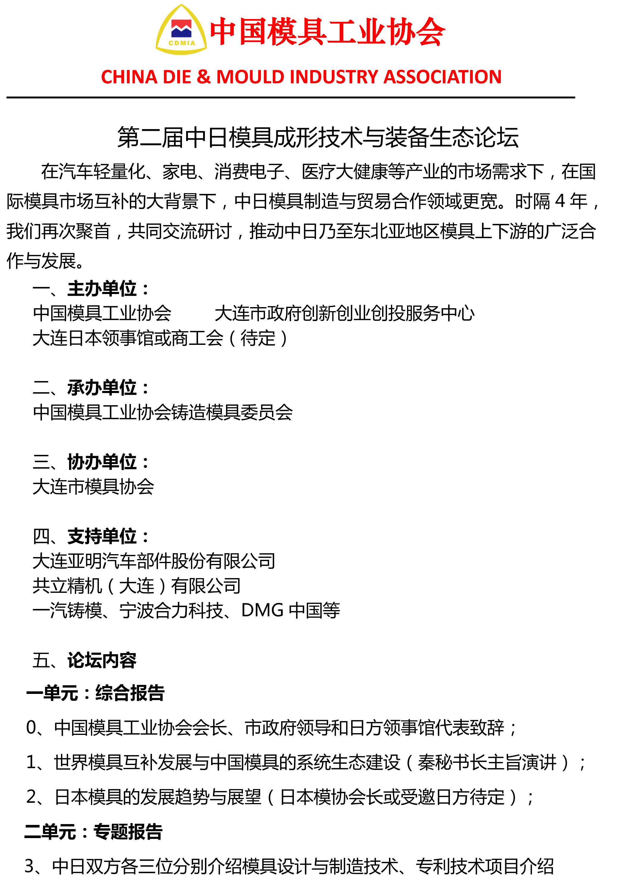 5月31日在大連第二屆中日模具成形技術(shù)與裝備生態(tài)論壇全面啟動(dòng)