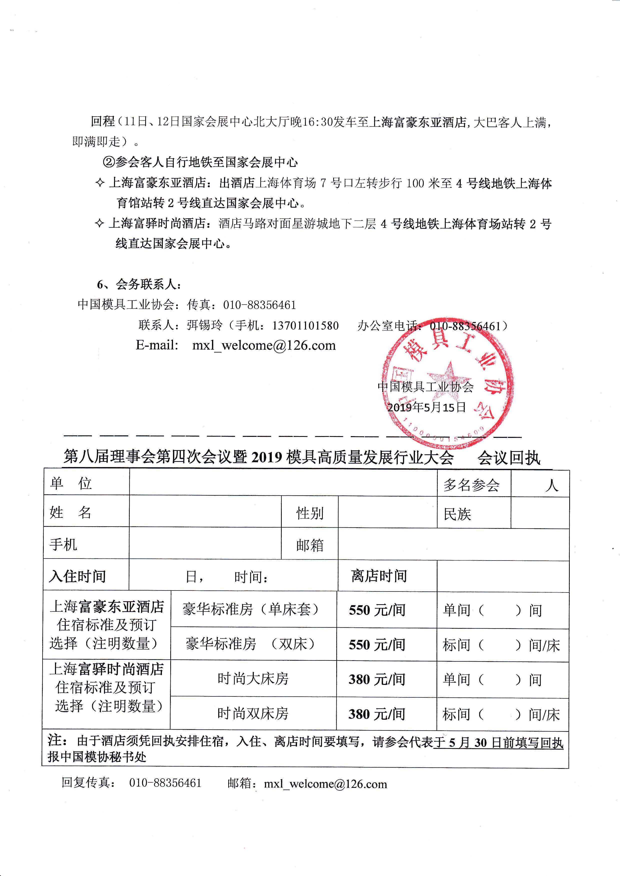 中國模具工業(yè)協(xié)會(huì )八屆理事會(huì )第四次會(huì )議暨2019模具行業(yè)高質(zhì)量發(fā)展大會(huì )會(huì )議通知