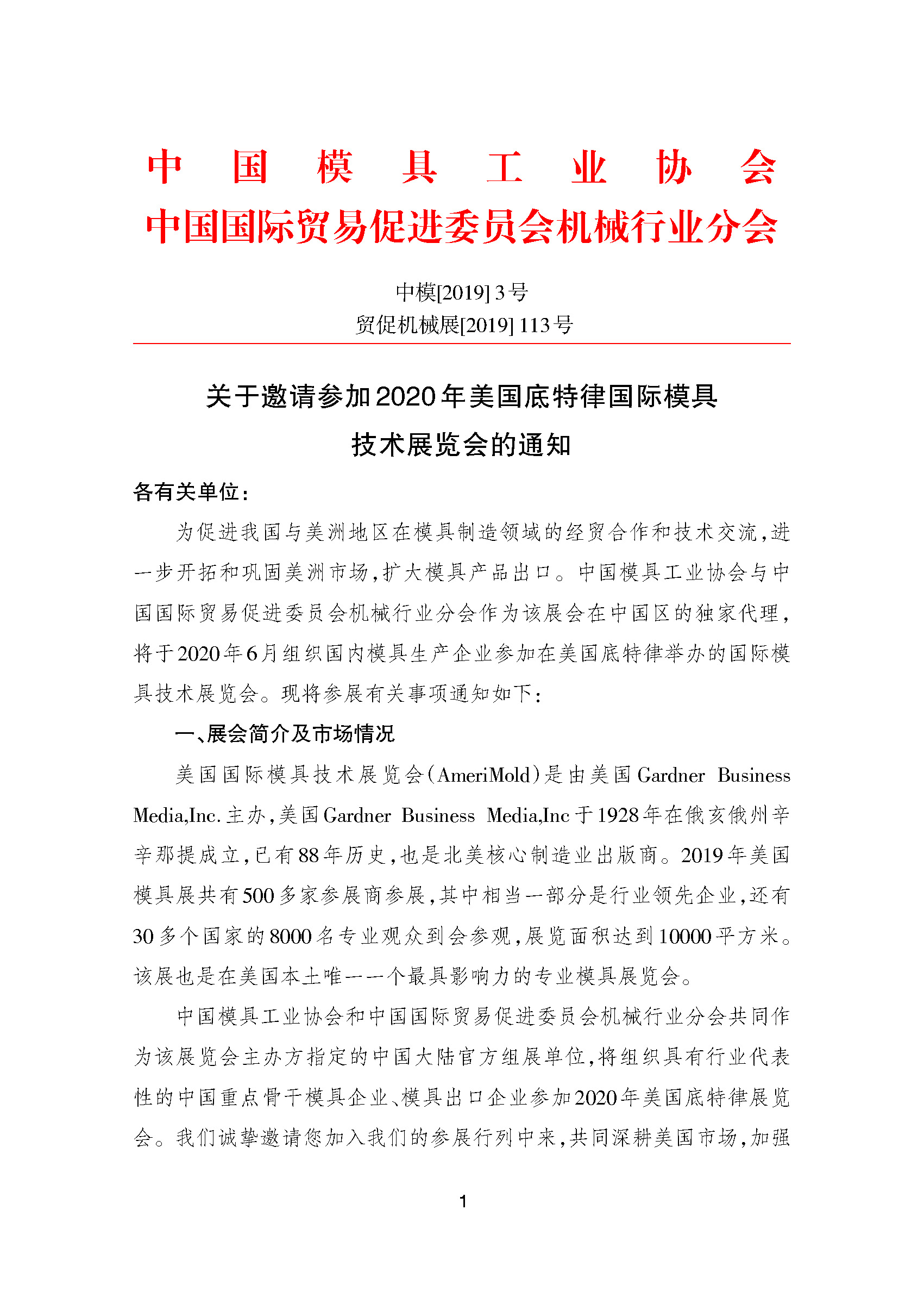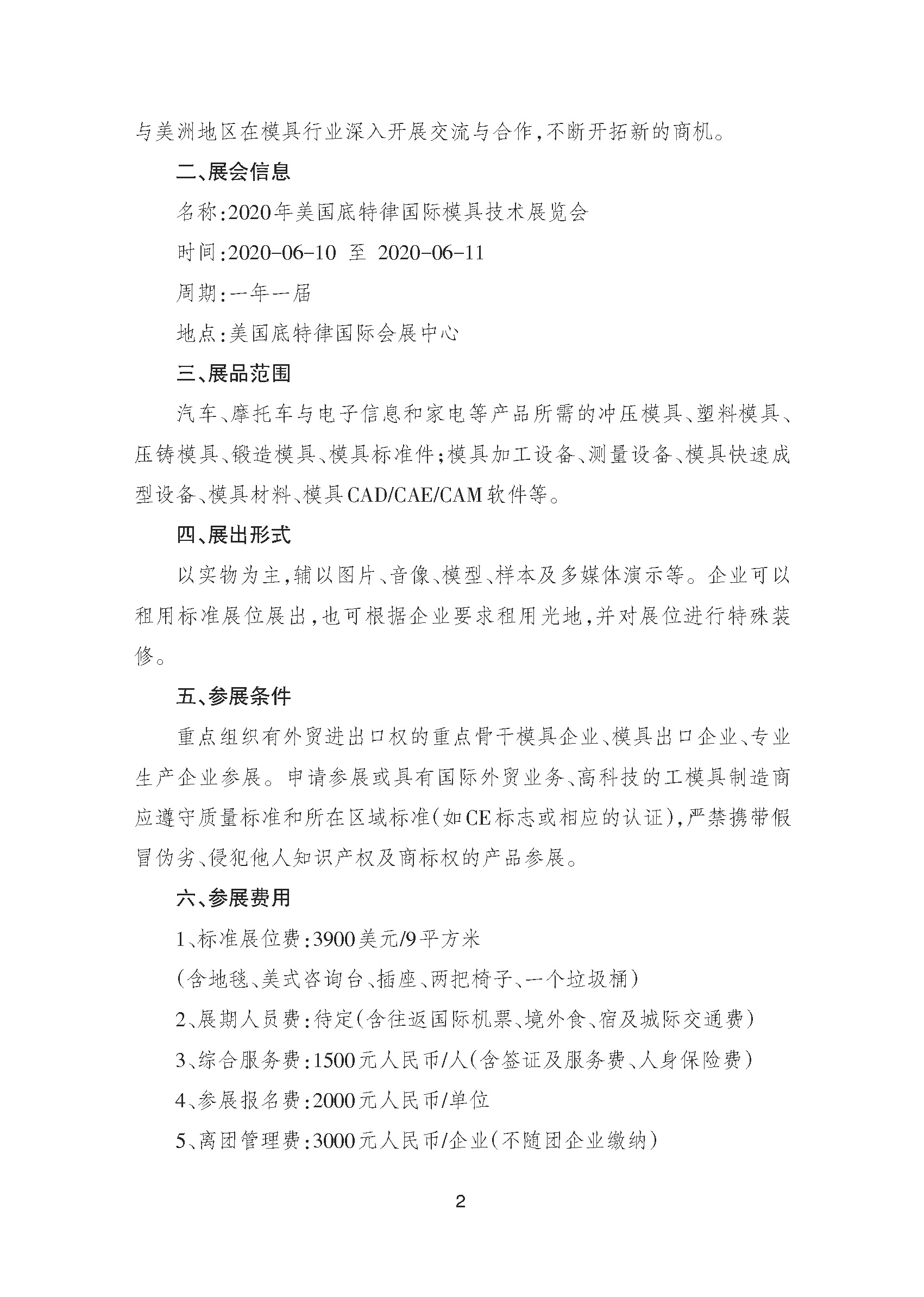 關(guān)于邀請參加2020年美國底特律國際模具技術(shù)展覽會(huì )的通知