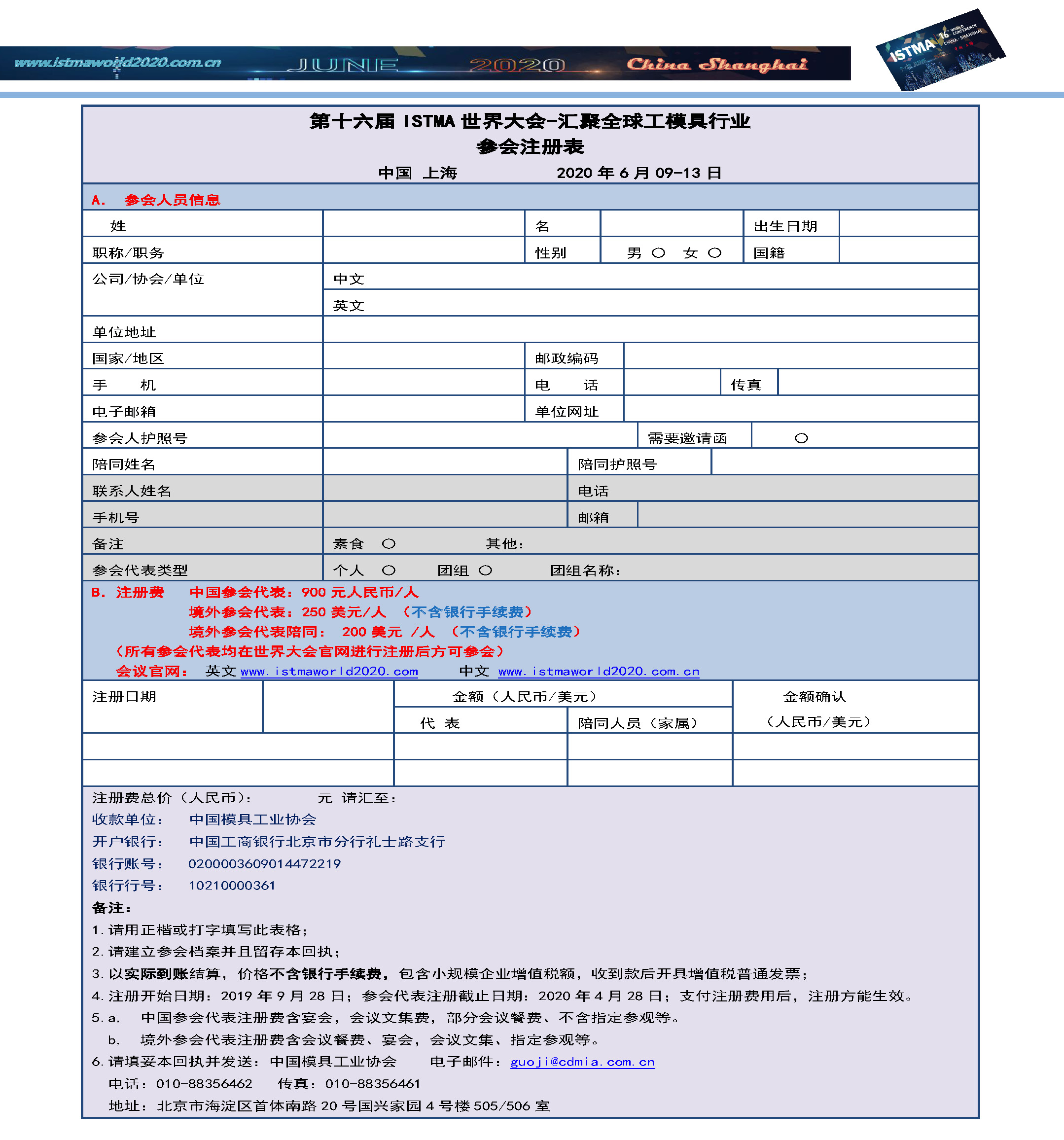 第十六屆ISTMA世界大會(huì )注冊表 中文.docx