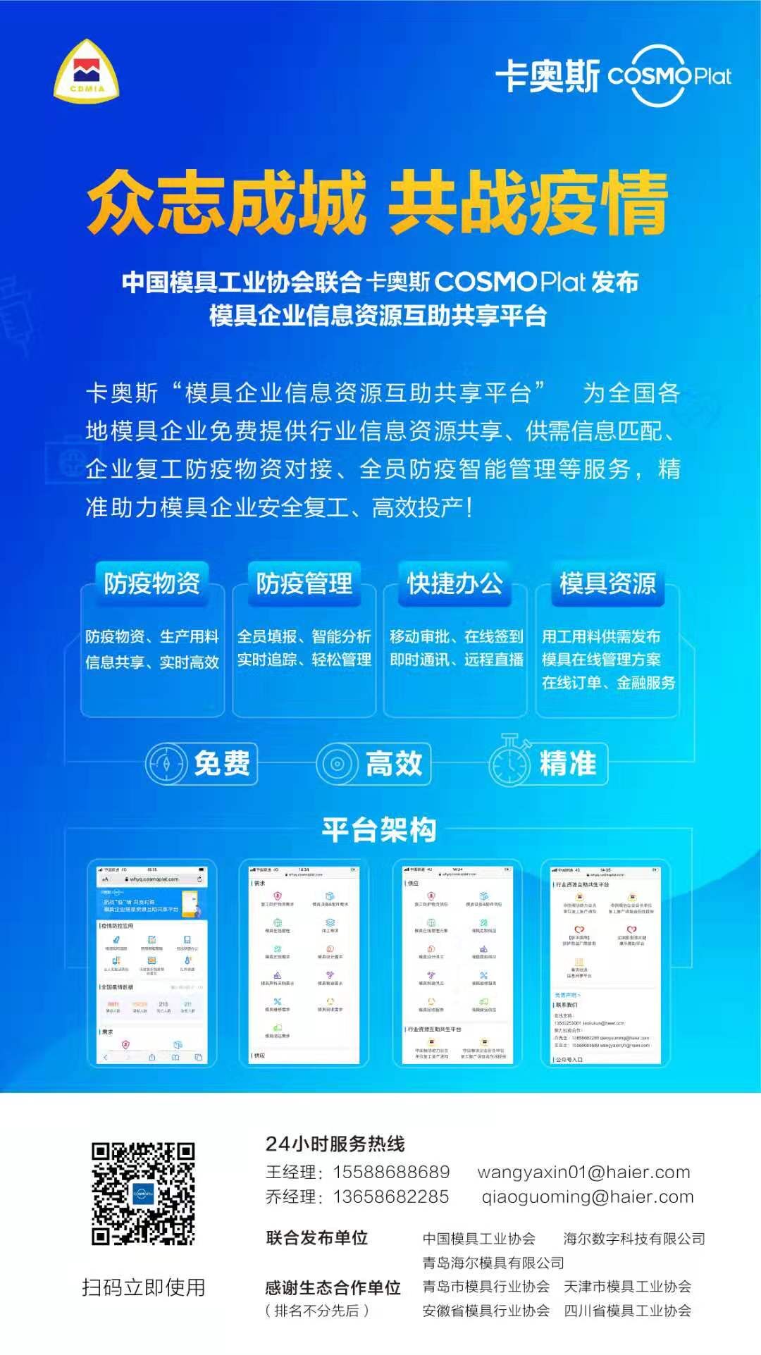 中國模具工業(yè)協(xié)會(huì ) 海爾卡奧斯COSMOPlat聯(lián)合發(fā)布模具專(zhuān)屬平臺 全員防疫管理、在線(xiàn)快捷辦公、防疫物資供需信息互助共享
