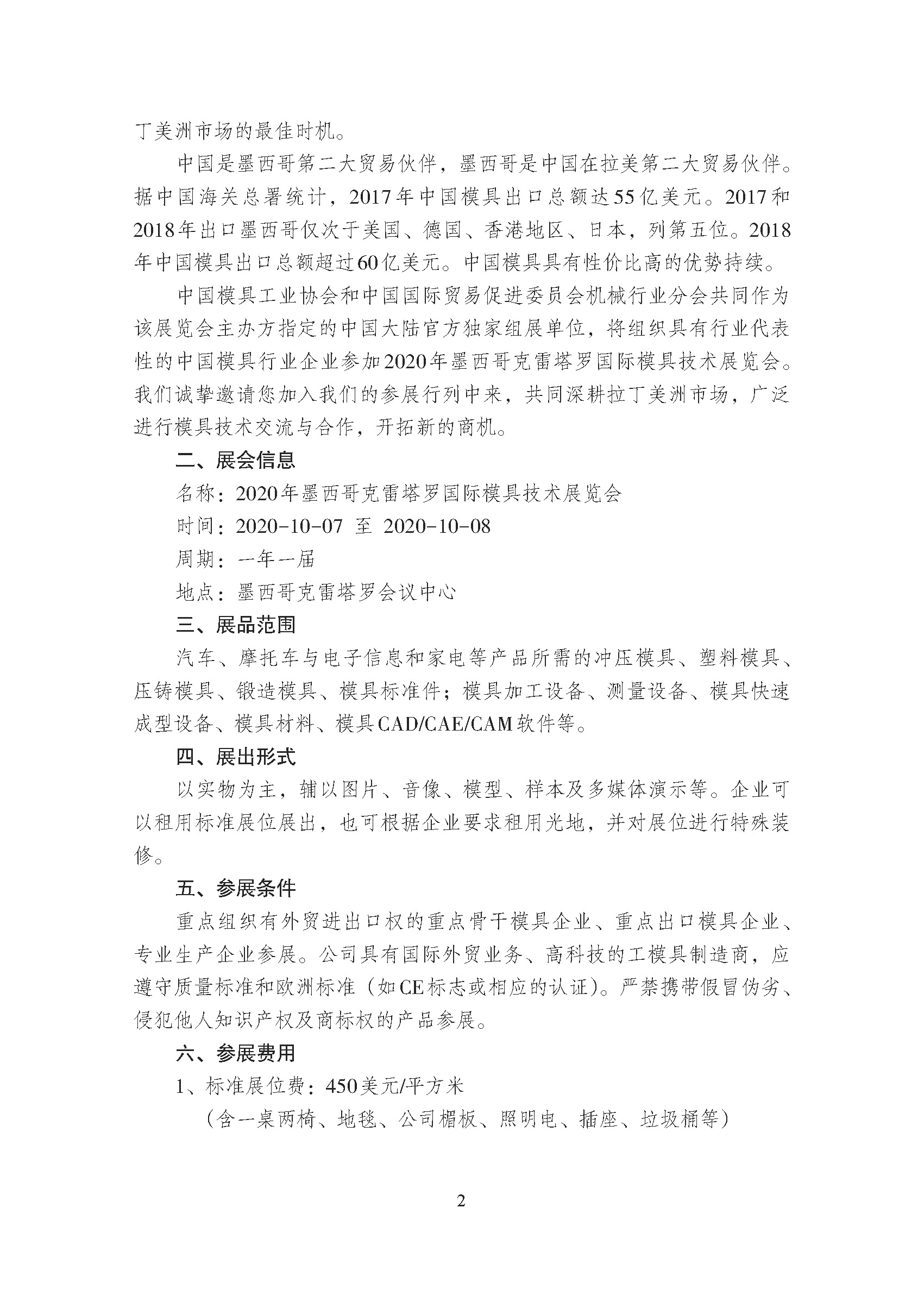 關(guān)于邀請參加2020年墨西哥克雷塔羅國際模具技術(shù)展覽會(huì )的通知