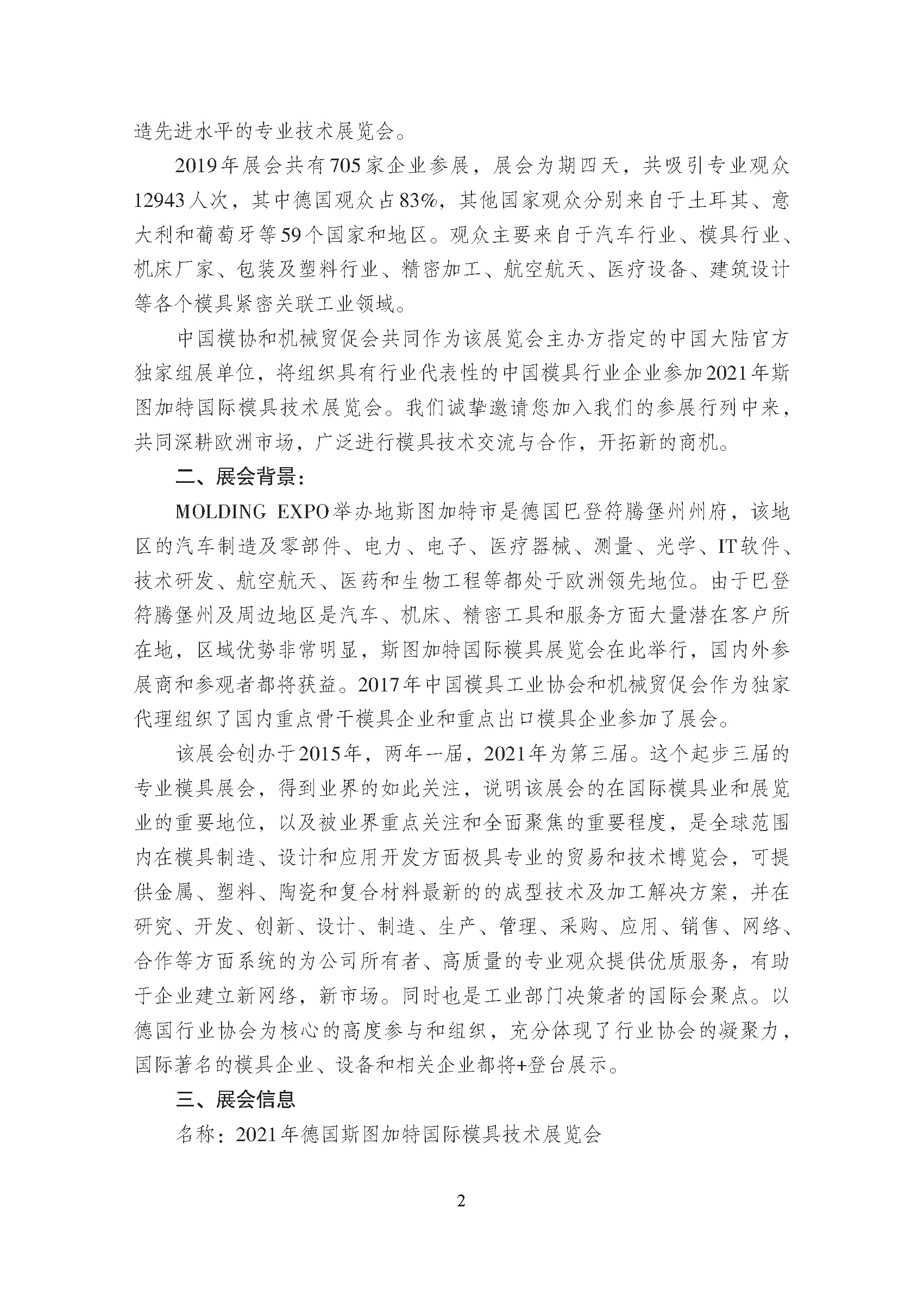 關(guān)于邀請參加2021年德國斯圖加特國際模具技術(shù)展覽會(huì )的通知