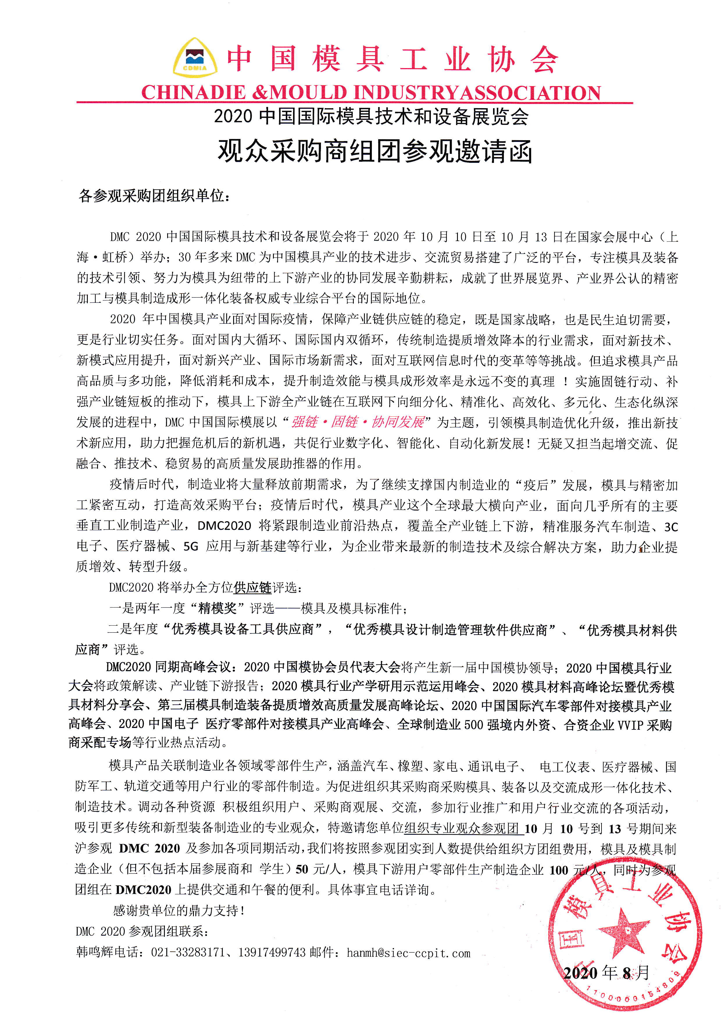 DMC2020觀(guān)眾采購商組團參觀(guān)邀請函