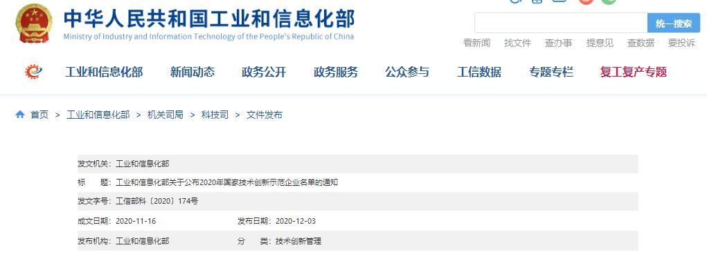 關(guān)于公布2020年國家技術(shù)創(chuàng )新示范企業(yè)名單的通知