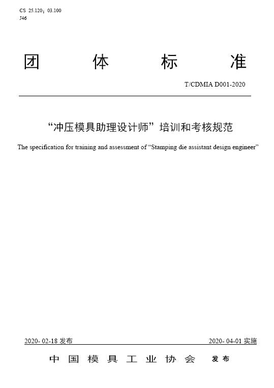 中國模協(xié)標準D001-沖壓模具助理設計師培訓和考核規范-2020