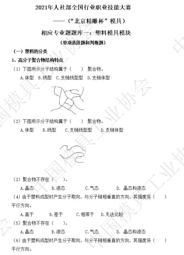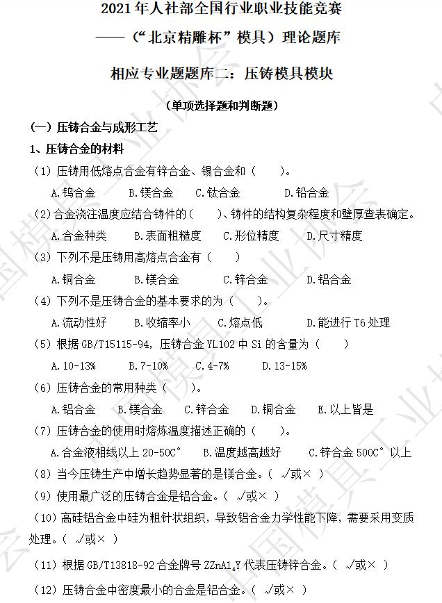 相應專(zhuān)業(yè)題題庫:塑料模具模塊、壓鑄模具模塊