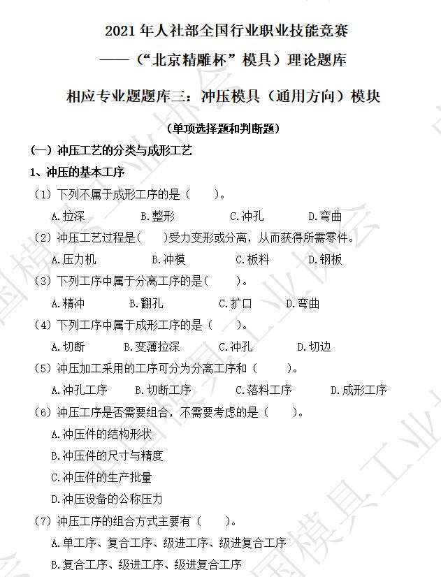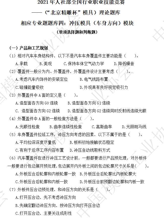 相應專(zhuān)業(yè)題題庫:沖壓模具(通用方向)模塊、沖壓模具(車(chē)身方向)模塊