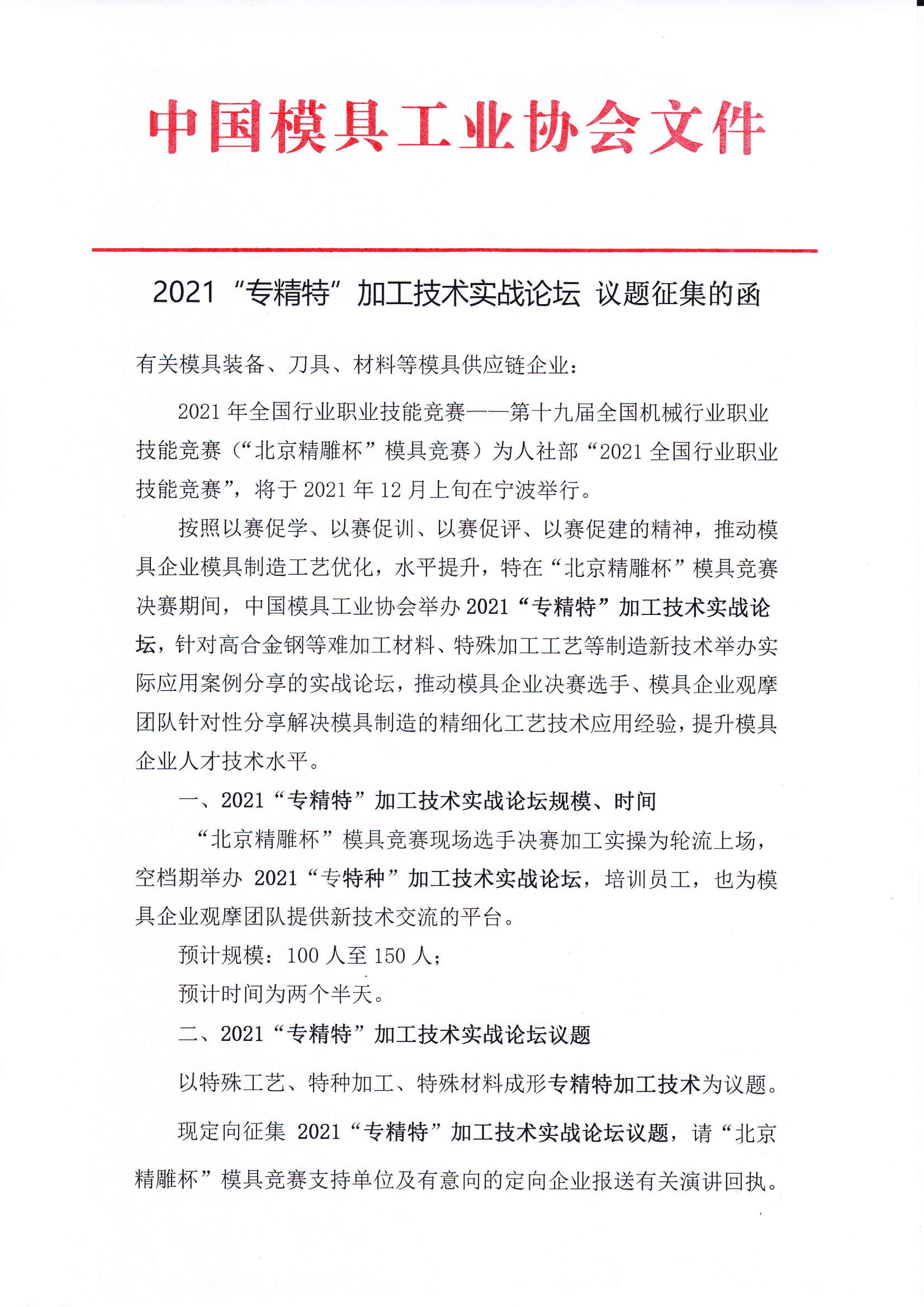 2021“專(zhuān)精特”加工技術(shù)實(shí)戰論壇議題征集的函