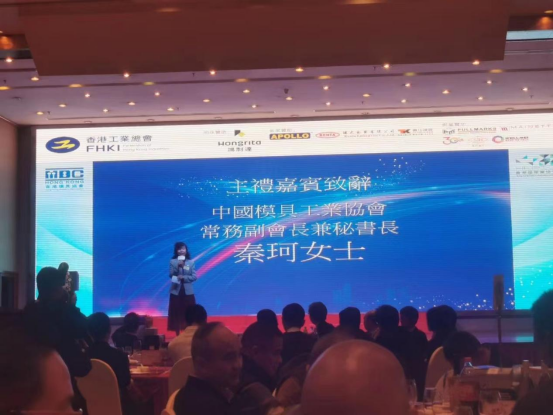 2021年12月4日,由香港模具協(xié)會(huì )、香港塑膠業(yè)協(xié)會(huì )聯(lián)合行動(dòng)以跨越常態(tài) 創(chuàng )新增值為主題,在東莞長(cháng)安舉辦的大灣區智能制造分享會(huì )及聯(lián)合晚宴,到會(huì )港資企業(yè)眾多,參會(huì )人數達380人,作為產(chǎn)業(yè)鏈緊密關(guān)聯(lián)的兩個(gè)行業(yè)組織的聯(lián)合交流行動(dòng)極大促進(jìn)了上下游產(chǎn)業(yè)的結合與提升。此次聯(lián)合行動(dòng)也得到了香港特區政府相關(guān)部門(mén)、香港工業(yè)總會(huì )的重視,中國模協(xié)常務(wù)副會(huì )長(cháng)兼秘書(shū)長(cháng)秦珂女士與香港特區政府駐粵經(jīng)貿辦事處副主任蘇紫賢女士作為主禮嘉賓參加了這次港資企業(yè)自疫情來(lái)的首次聚會(huì ),中國模協(xié)與香港模協(xié)互贈禮物,中國模協(xié)的“血脈親情 攜手奮進(jìn)”與香港模協(xié)的“同心協(xié)力 賦能工業(yè)”不僅表達了彼此的情意更是相互的勉勵。會(huì )上分享了香港特區政府、中國政府的產(chǎn)業(yè)支持舉措,中國各級政府的企業(yè)培育與香港工業(yè)總會(huì )的產(chǎn)業(yè)推動(dòng)。大家不僅談抗疫的故事,談“十四五”的未來(lái)發(fā)展,就疫情下的轉型與出路充分研討,也盡情享受老友相聚、新朋相識的美好時(shí)光。