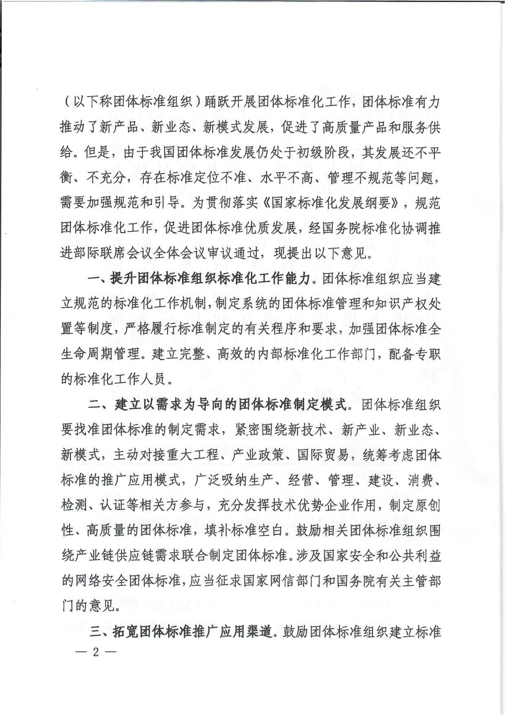 關(guān)于促進(jìn)團體標準規范化優(yōu)質(zhì)發(fā)展的意見(jiàn)
