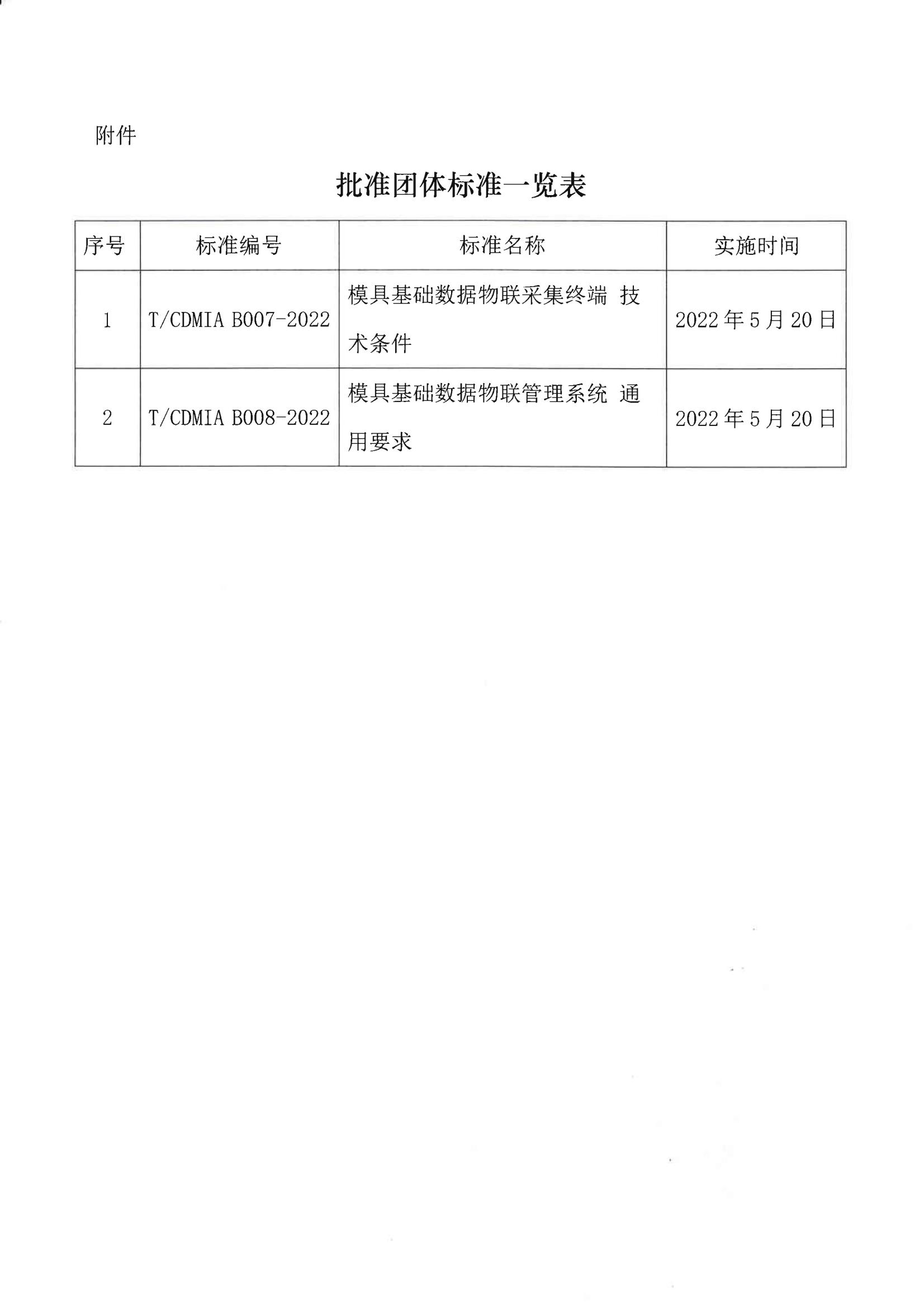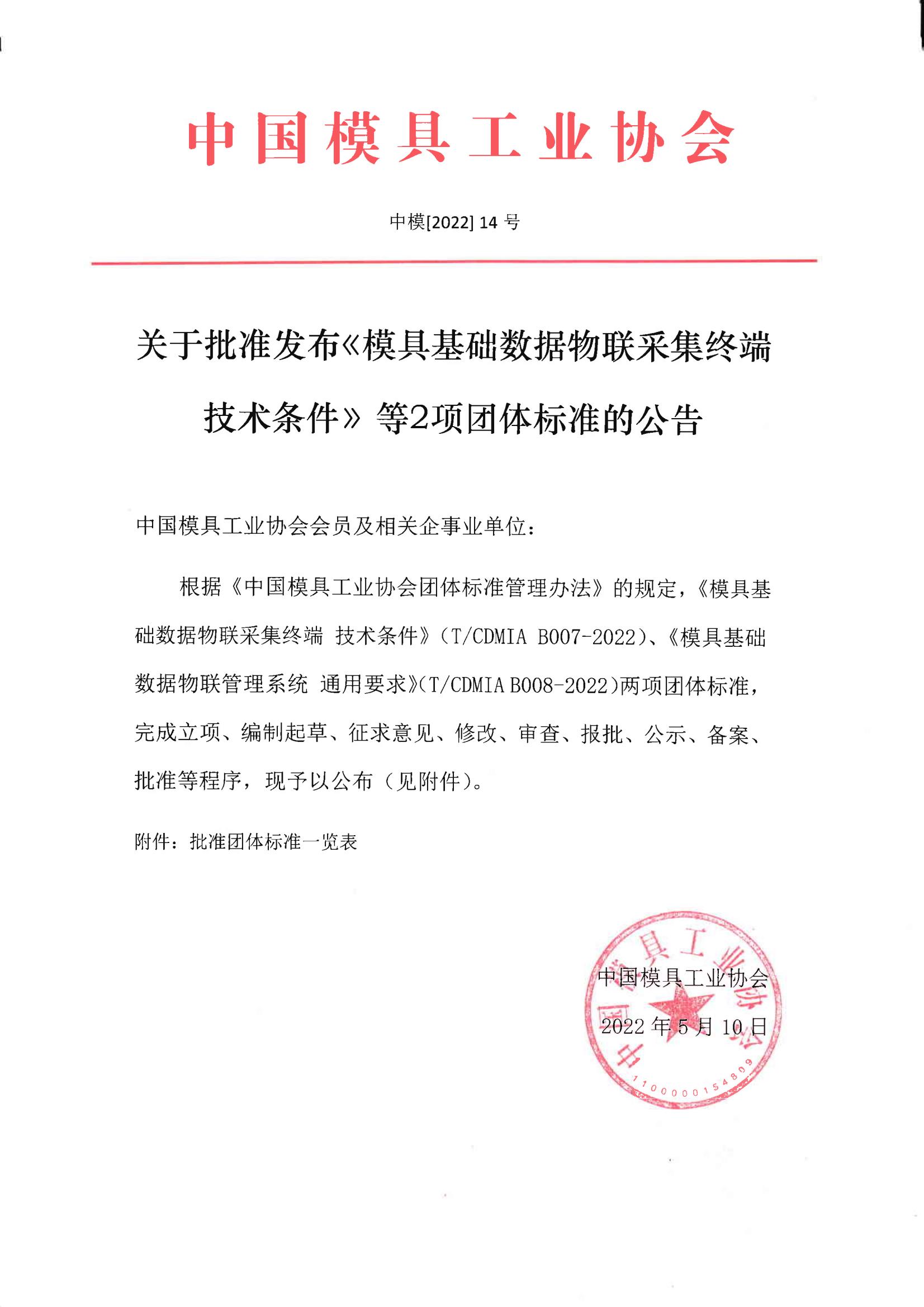 關(guān)于批準發(fā)布《模具基礎數據物聯(lián)采集終端技術(shù)條件》等2項團體標準的公告