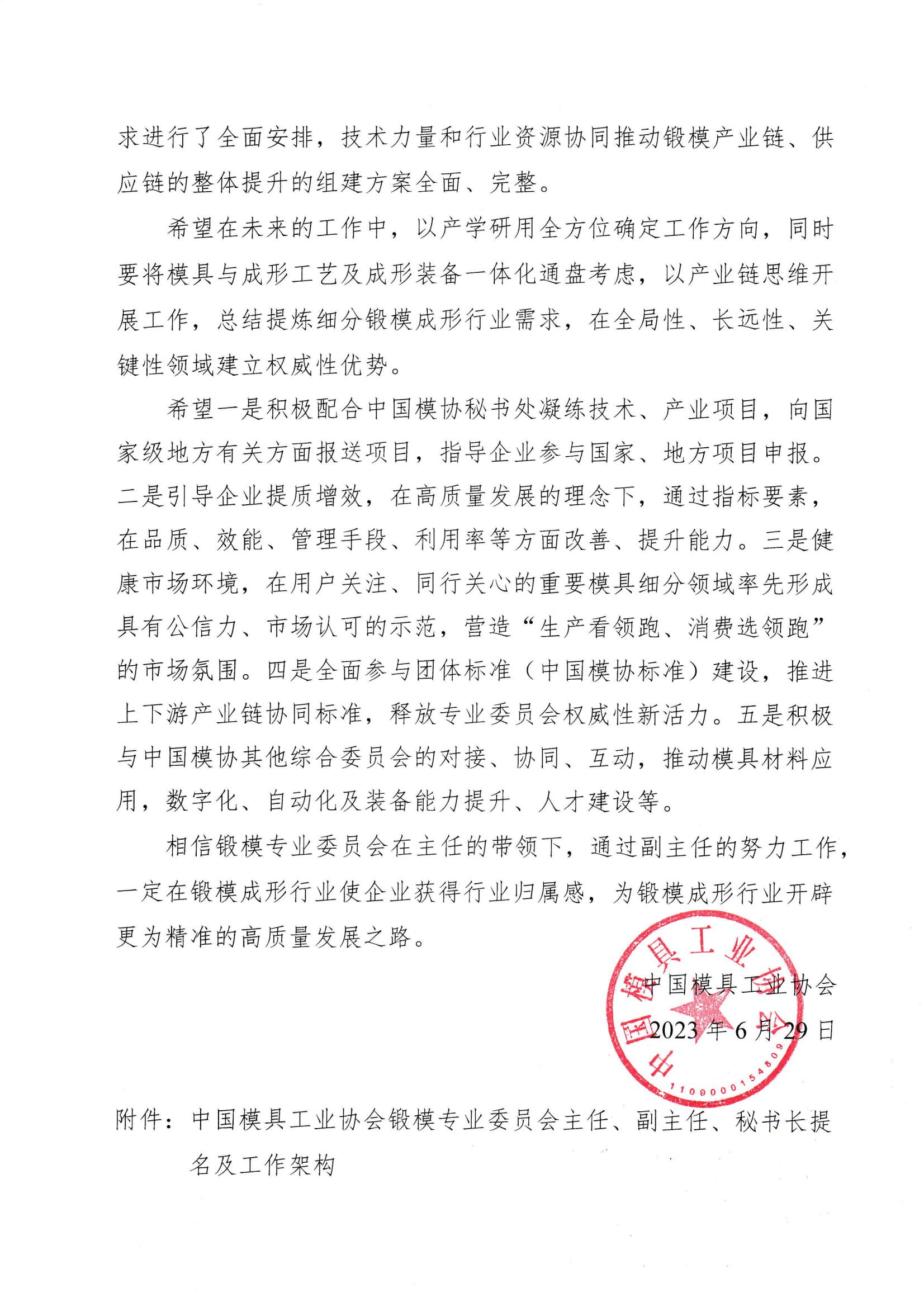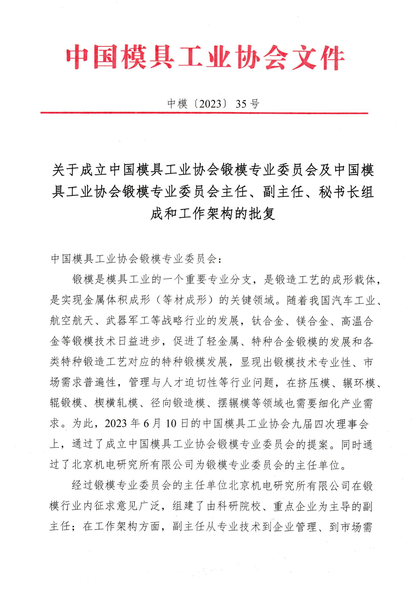 關(guān)于成立中國模具工業(yè)協(xié)會(huì )鍛模專(zhuān)業(yè)委員會(huì )的批復