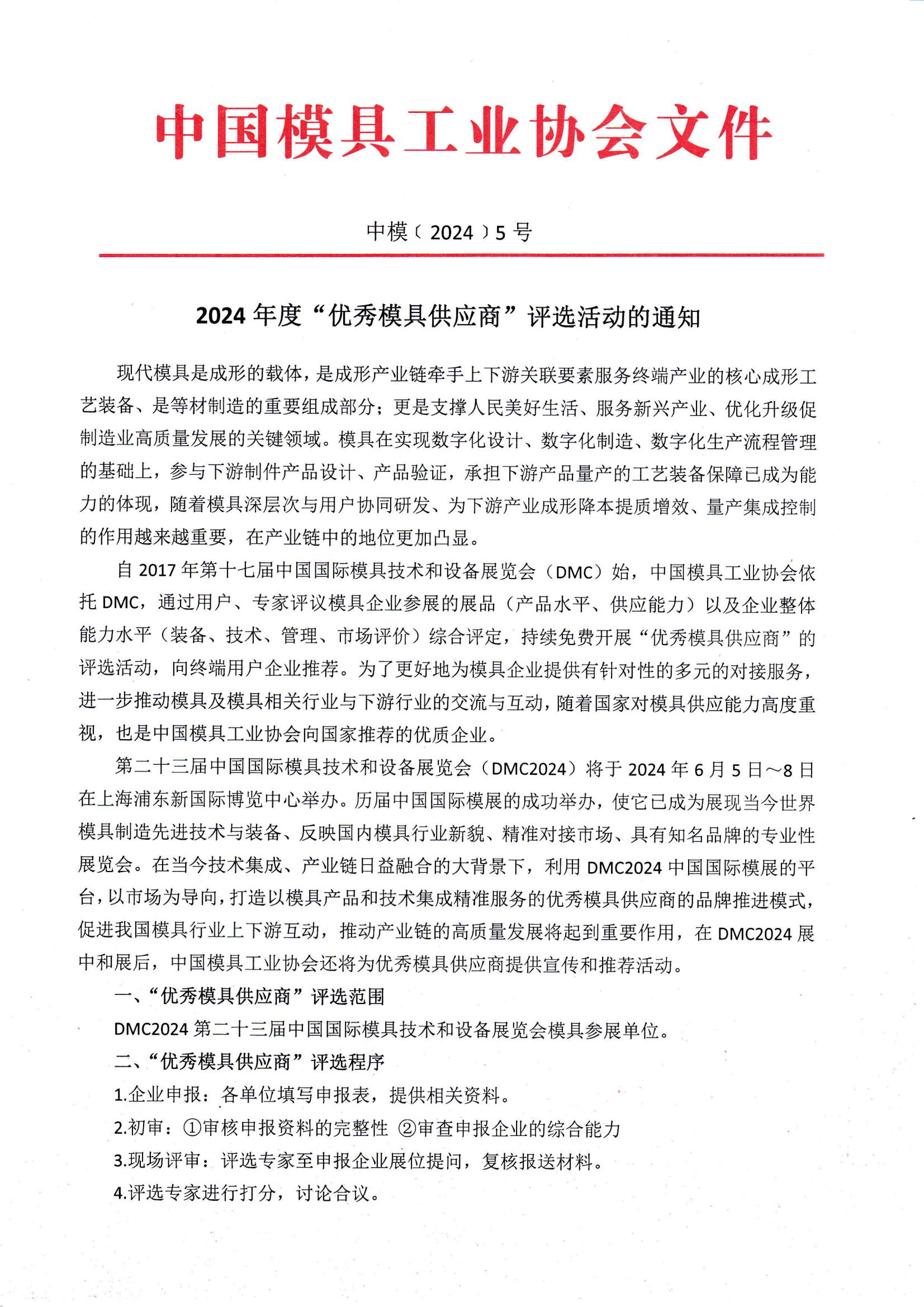 2024年度“優(yōu)秀模具供應商”評選活動(dòng)的通知