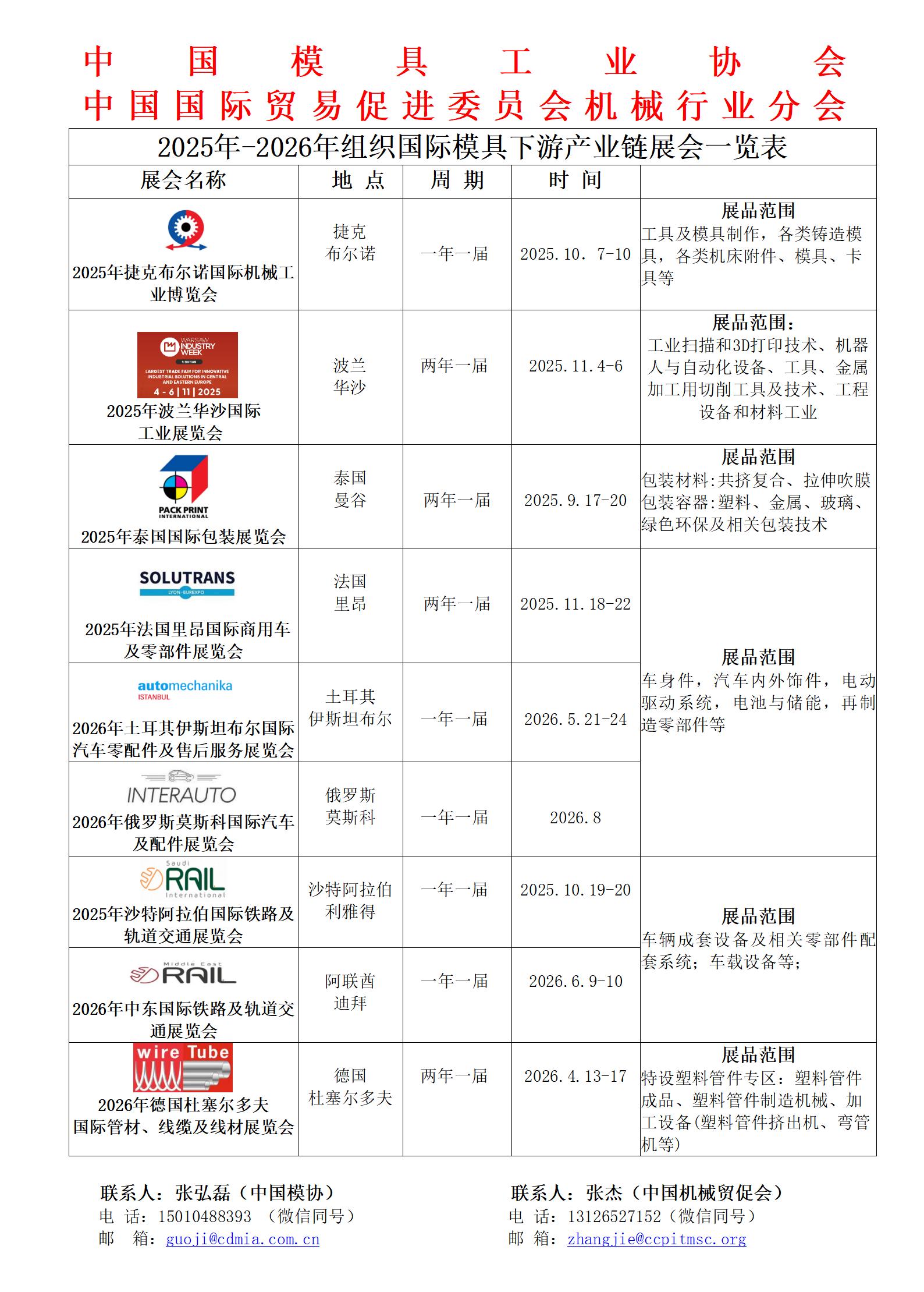 2025-2026年組織國際模具下游產(chǎn)業(yè)鏈展會(huì )一覽表